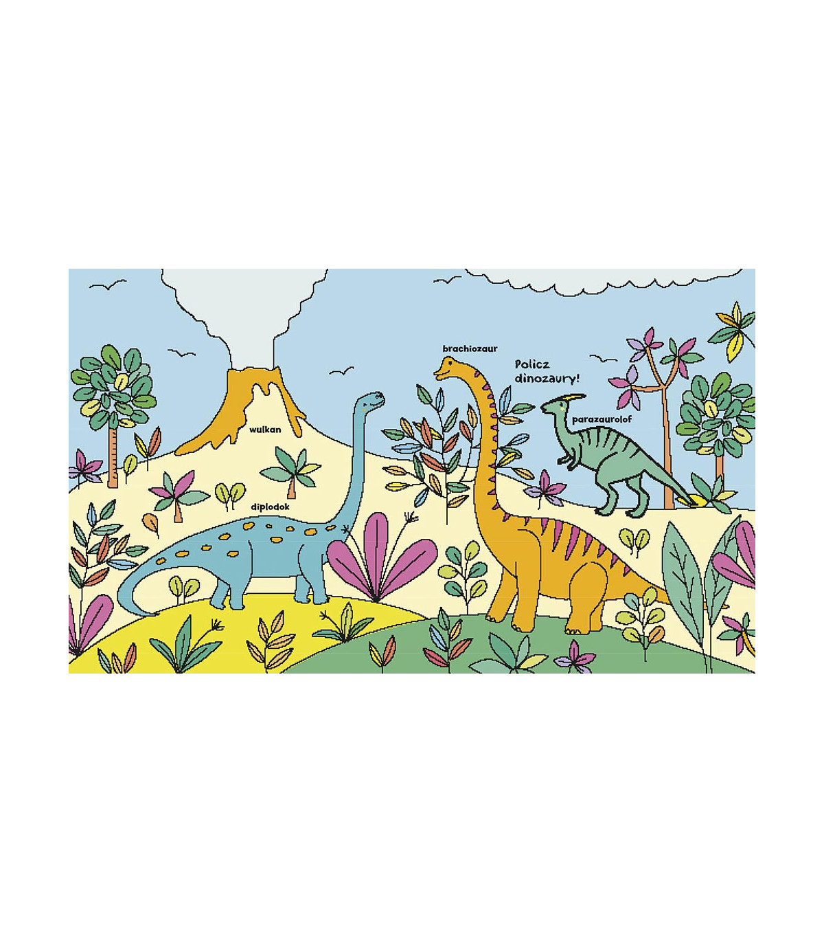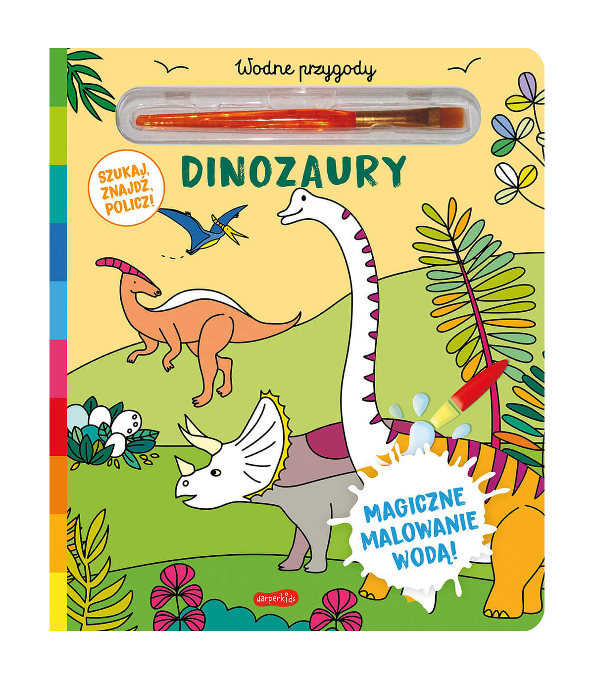 Atutem książeczki Dinozaury jest możliwość poznania prehistorycznych gadów żyjących tysiące lat temu na Ziemi. Oprócz magicznego malowania wodą na każdej stronie mamy krótkie polecenie do wykonania, czyli zabawę w „szukaj i znajdź”: „Pokaż i policz tropy dinozaurów” czy „Policz gady wodne”. Inne kolorowanki w serii: Przyroda i Jednorożce.