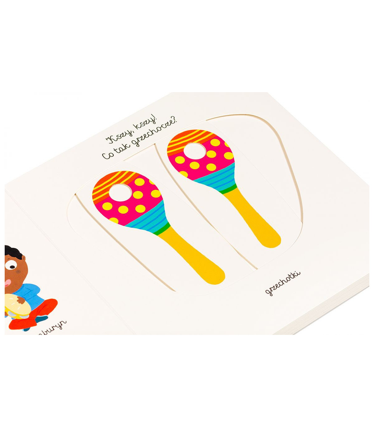 ● wytrzymałe strony z grubego kartonu, dzięki którym książeczka nie ulegnie zniszczeniu podczas zabawy;