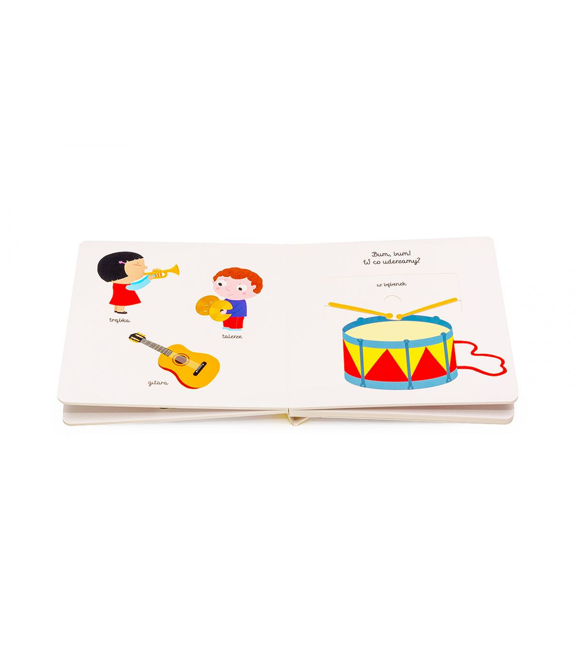 „Muzyka. Akademia mądrego dziecka. Pierwsze słowa” to ilustrowana książeczka dla maluchów, z której dzieci poznają nazwy instrumentów takich jak tamburyn, flet, cymbałki czy bębenek. Poprzez wciągającą zabawę z przesuwaniem ruchomych obrazków najmłodsi ćwiczą rączkę, a przy tym uczą się nowych słów. Sympatyczne ilustracje Natalie Choux zajmą dzieci na długi czas!