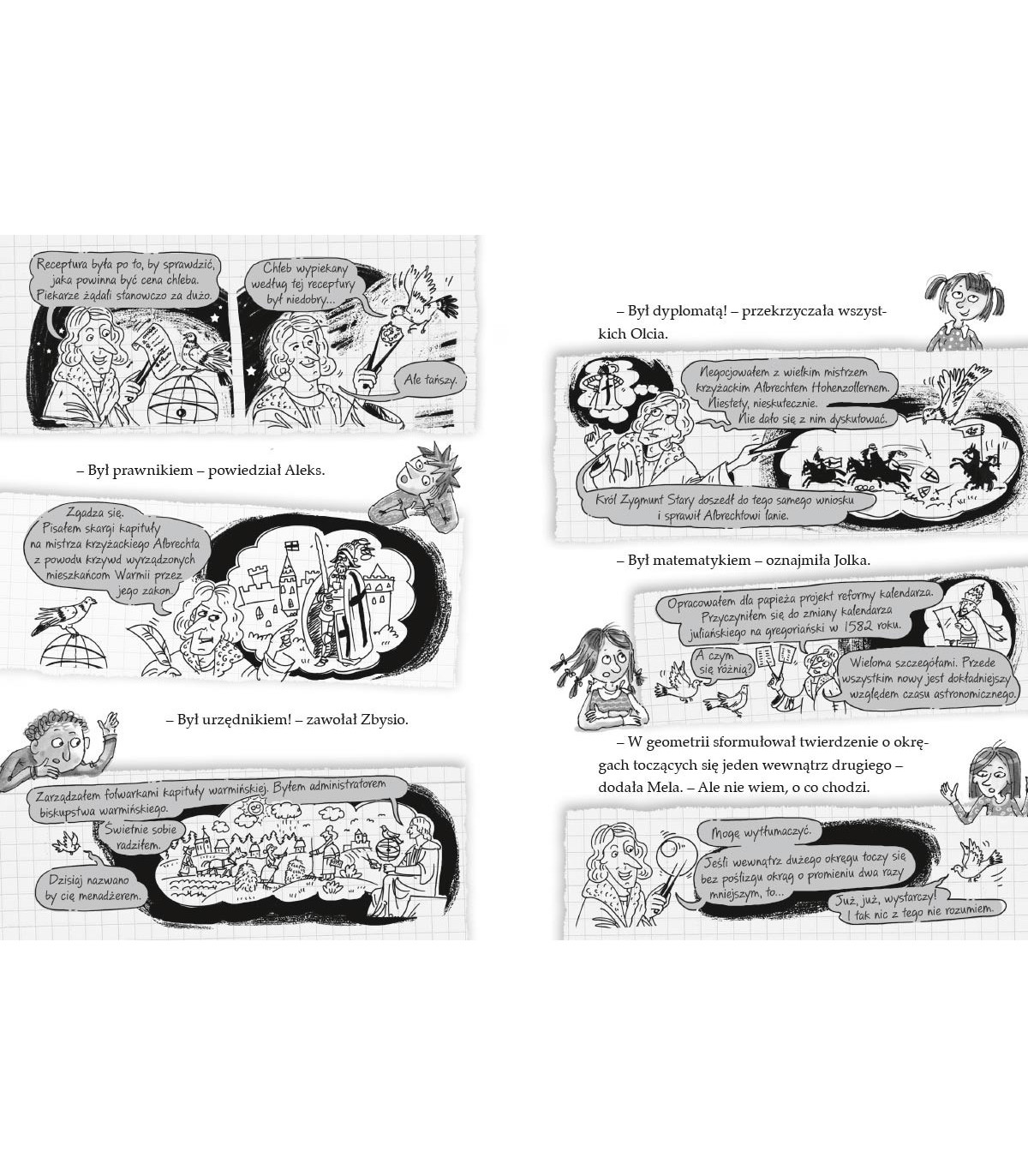 Grupka nastolatków przenosi się w czasie, aby sprawdzić, czy Mikołaj Kopernik dokonał swojego przełomowego odkrycia samodzielnie, czy… od kogoś ściągnął! Żeby wypełnić misję, zapiszą się do Akademii Krakowskiej, zatrudnią u Wita Stwosza, a nawet razem z Kopernikiem będą bronić Olsztyna przed Krzyżakami. Dziwne? Wcale nie! W niedalekiej przyszłości nauka historii wygląda zupełnie inaczej… Szczególnie gdy nauczycielem jest pan Cebula.