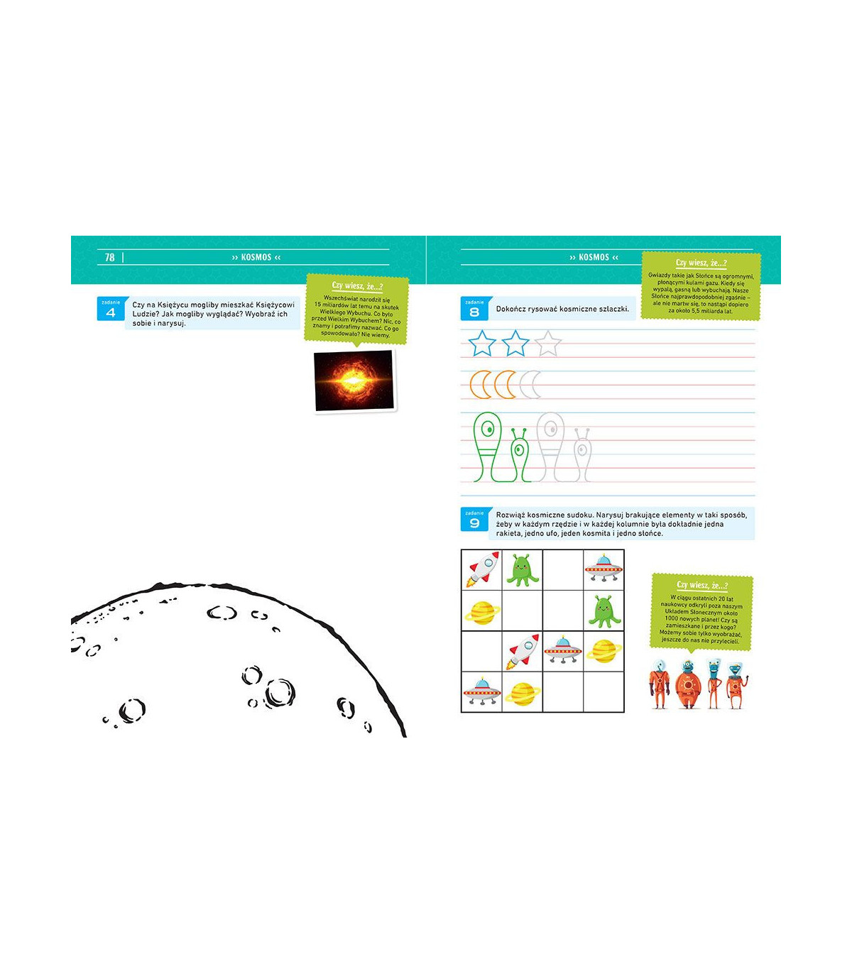 Jeśli Wasze dzieci zastanawiały się nad tym choć raz, to ta książka jest właśnie dla nich! W środku znajdują się liczne zagadki, łamigłówki, labirynty, kodowanie, wyszukiwanki i mnóstwo innych typów zadań, uwielbianych przez dzieci. Dodatkowo zadania wzbogacone zostały licznymi ciekawostkami o zwierzętach, kosmosie, człowieku, dinozaurach... Z tej książki można się naprawdę wiele dowiedzieć, fantastycznie się przy tym bawiąc!