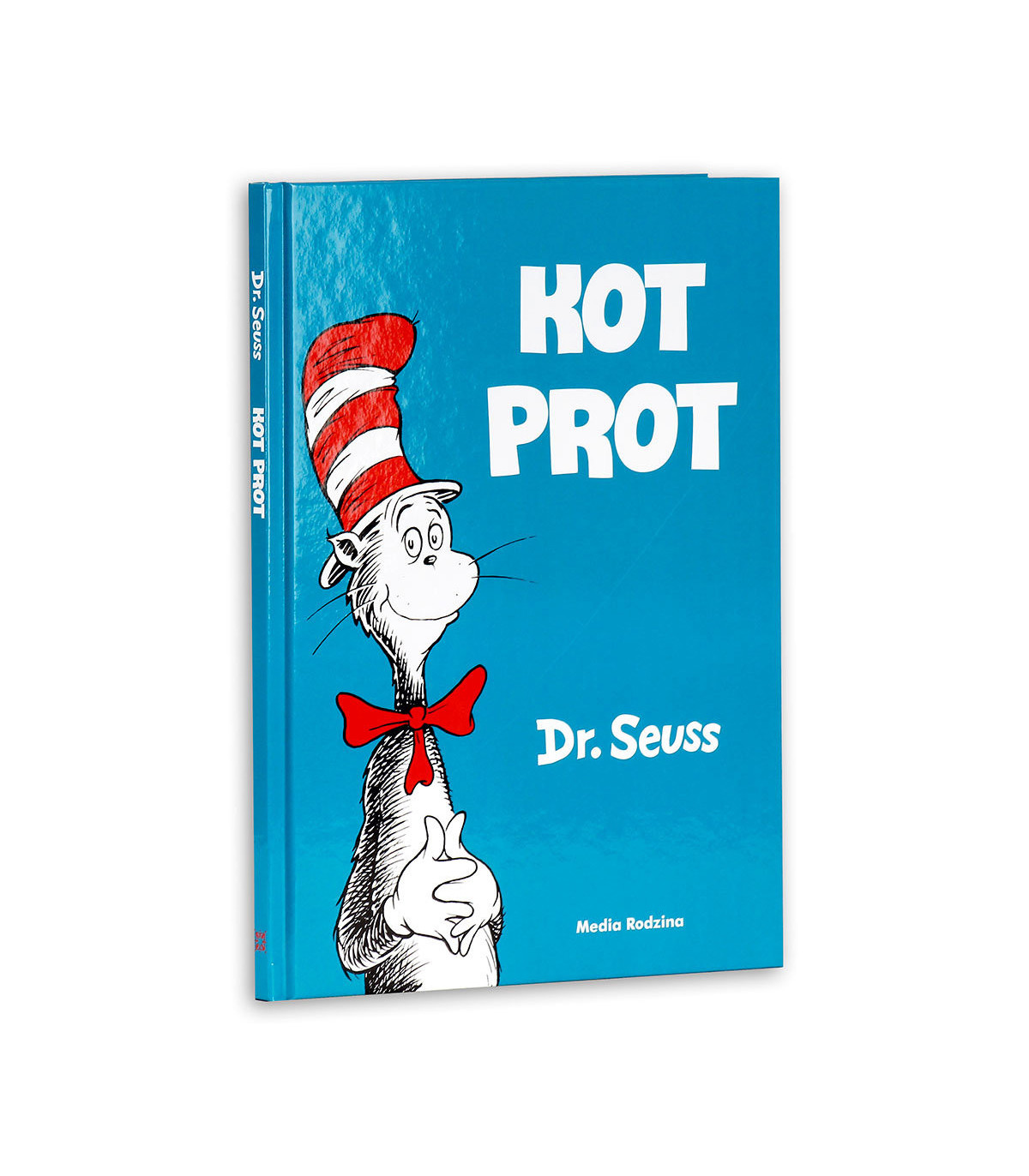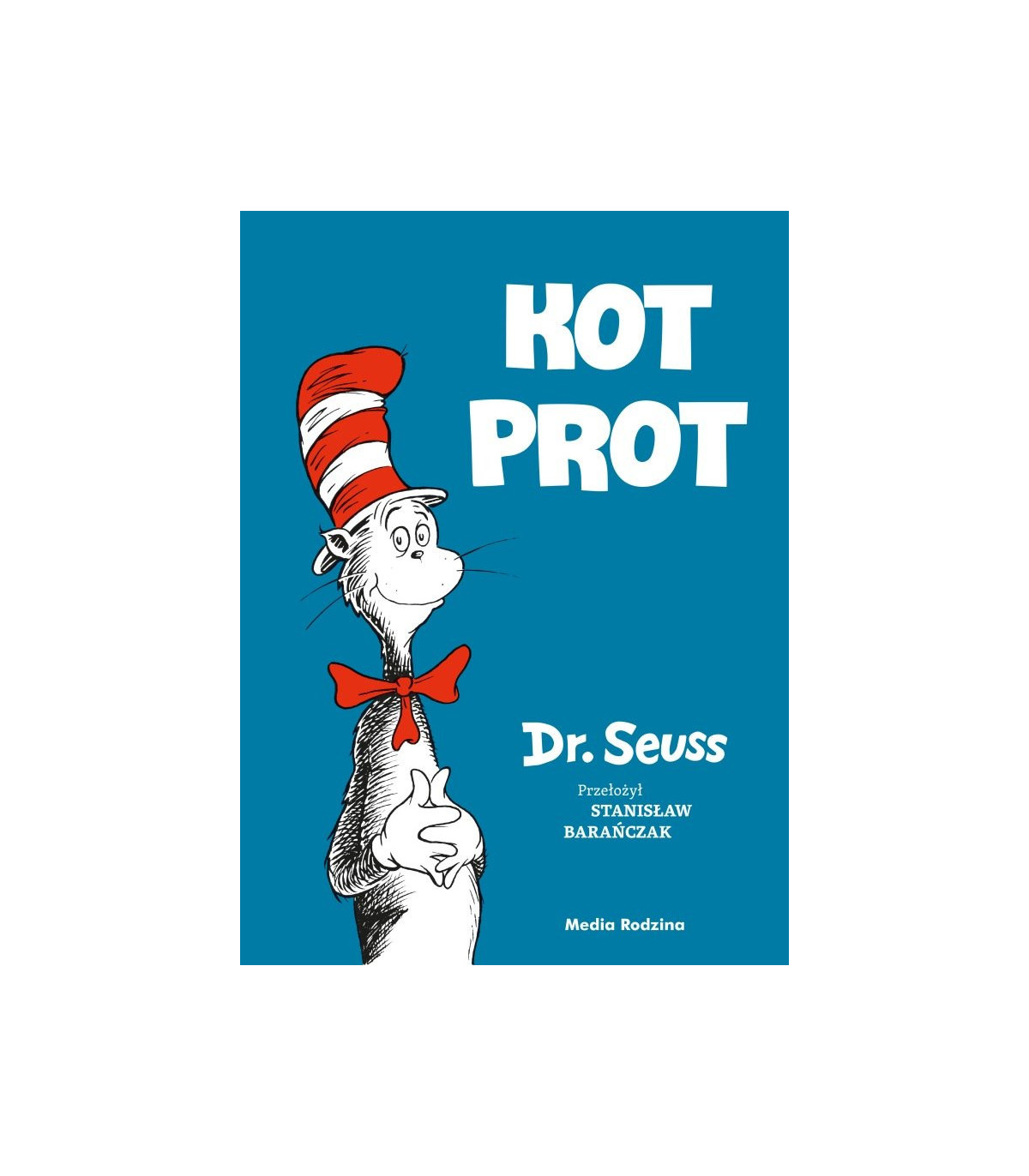 Dr Seuss is a pen name of an American children's author. His most famous book is The Cat in the Hat translated into Polish as Kot Prot.