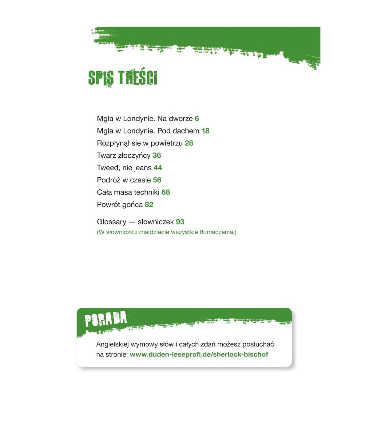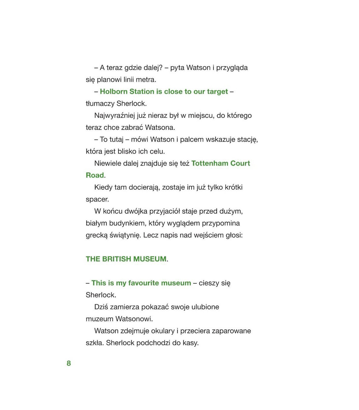 Każdy tom serii zawiera mapkę Londynu, słowniczek wszystkich słówek, jak również link do ich odsłuchania. „Sherlock Junior i bezgłowy goniec” nie jest wyjątkiem!