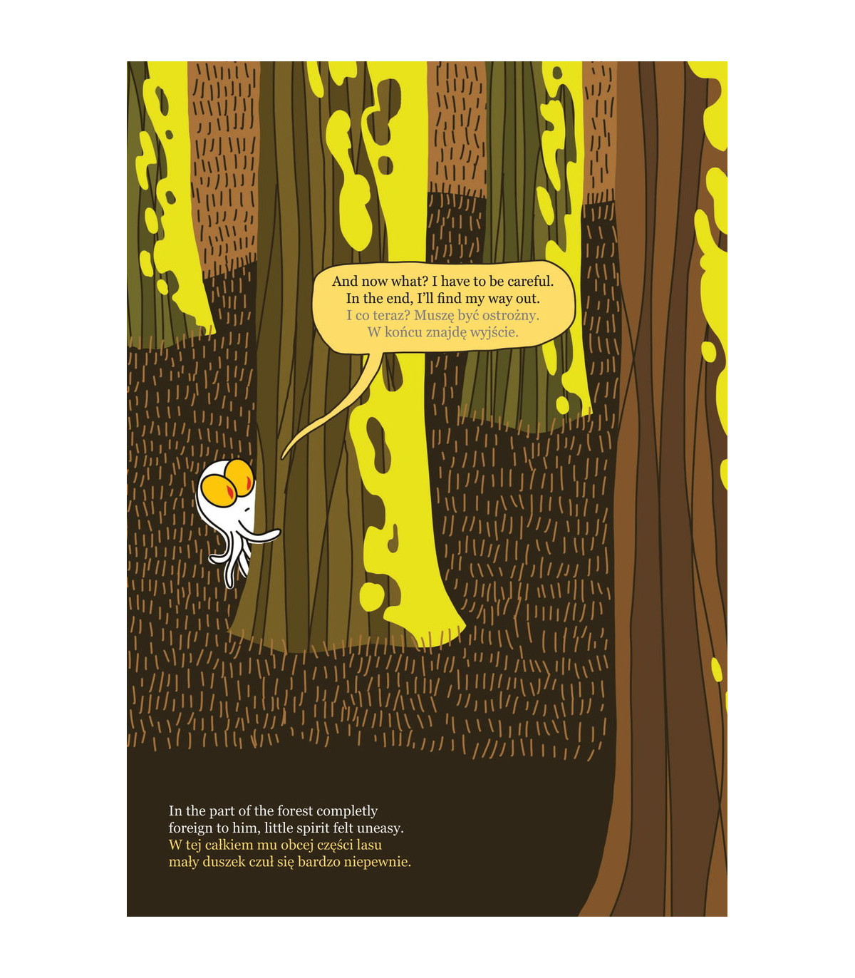 Stary las, świadek wielu niesamowitych historii, dzieli się nimi z młodym czytelnikiem. Świetlik, mały leśny duszek, gubi się w lesie. Zazwyczaj to on pomaga zbłąkanym. Czy jednak uda mu się samemu wydobyć z tarapatów? W mroku czyha wiele nieznanych stworzeń. Jak znaleźć przyjaciół i nie wpaść w pułapki wrogów? Świetlik, ognik, duszek bagienny to postać z ludowych wierzeń słowiańskich, zamieszkująca lasy i bagna. Świecąc żółtym światłem, wskazywał dobrym ludziom drogę, a złych sprowadzał na manowce. Książka "Zagubiony Świetlik" w wersji dwujęzycznej umożliwia naukę języka angielskiego dzieciom, które już potrafią czytać. Warto skorzystać z tej atrakcyjnej formy nauki. Książka stanowi znakomitą edukacyjną pomoc, dając dziecku dobre podstawy do nabycia umiejętności czytania angielskich tekstów ze zrozumieniem.