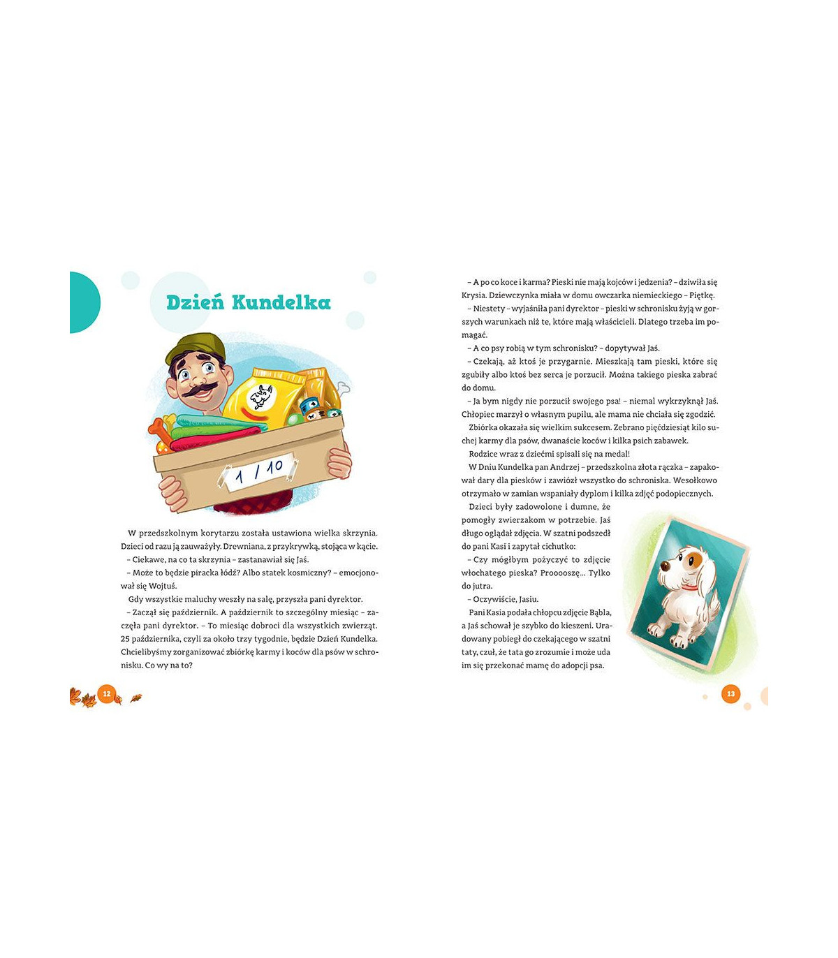 Czytelnicy towarzyszą dzieciom w pierwszych dniach przedszkola, dowiadują się wielu rzeczy o przyrodzie, chodzą na wycieczki, trochę rozrabiają, a przede wszystkim doskonale się bawią! Obserwują zmieniające się pory roku, uczestniczą w przeróżnych świętach poznając polskie tradycje i obyczaje - czyli wszystko to, co dzieci kochają najbardziej!
