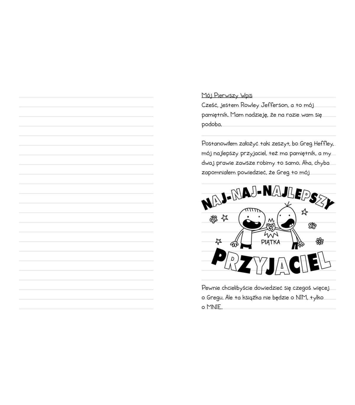 Cześć, pamiętacie mnie? Jestem Rowley Jefferson! Czyli naj-naj-najlepszy przyjaciel Grega Heffleya. I wiecie co? Teraz ja TEŻ prowadzę pamięt… to znaczy dziennik (Greg strasznie nie lubi tego słowa na „p”, mówi, że „p” są dobre dla dziewczyn). Opisuję tu różne zdarzenia z naszego życia, straszne, śmieszne i tajemnicze, a przede wszystkim, w odróżnieniu od niektórych, NIGDY NIE ZMYŚLAM. (Tylko nie mówcie Gregowi, że piszę tę książkę, bo się wścieknie, że odgapiłem!).