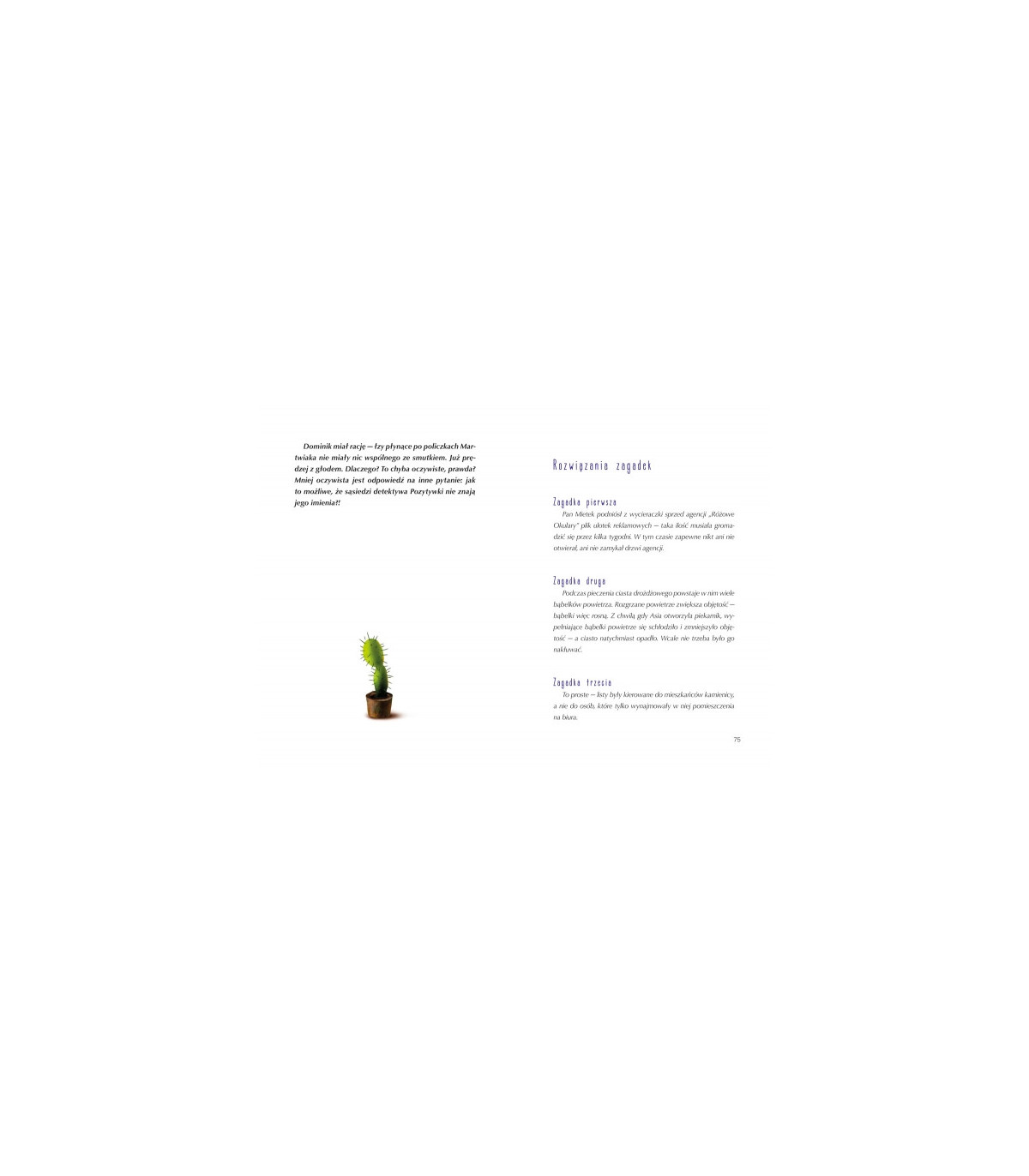Kim jest człowiek, którego brak tak bardzo poruszył mieszkańców kamienicy? To sympatyczny detektyw, postać nietuzinkowa, wielbiciel zagadek kryminalnych i amator gry w szachy. Jedyną bronią, jaką posiada, jest kaktus, nie licząc intelektu oczywiście. Szczególnie chętnie po pomoc zwracają się do niego dzieci, a ON pomaga im rozwiązywać rozmaite "kryminalne" sprawy. Teraz, gdy mieszkańcy kamienicy zachodzą w głowę, co mogło się stać z lubianym przez nich detektywem, uświadamiają sobie, że nie tylko nie wiedzą czy sympatyczny właściciel agencji ma jakichś bliskich, ale nawet nie znają jego imienia!