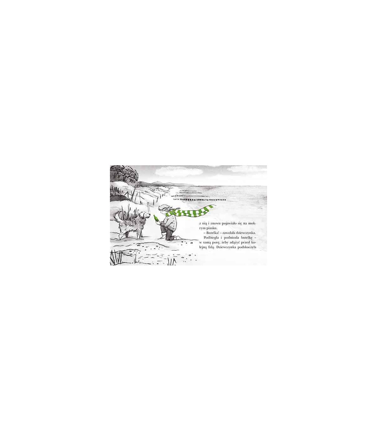 Po dwóch stronach morza żyli sobie dziewczynka i chłopiec. Co dzień wychodzili na brzeg opodal swoich domów, patrzyli to w piasek, to w dal – aż pewnego dnia fale wyrzuciły każdemu z nich pod nogi zadziwiający prezent. O tym, co z tego wynikło, opowiada ta książka.