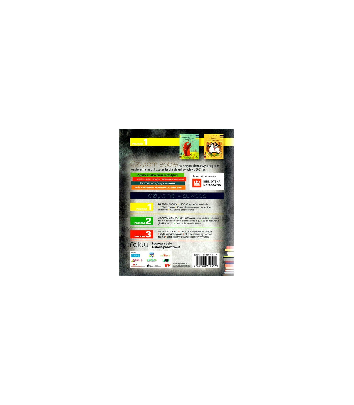 Czytam sobie to trzypoziomowy program literacki, który uzupełnia tradycyjną naukę czytania. Książki zostały napisane i zilustrowane przez najwybitniejszych polskich autorów i rysowników, i są przeznaczone przede wszystkim dla dzieci w wieku 5-7 lat. Z każdym kolejnym etapem rośnie poziom trudności. Poziom 1. to proste zdania, krótkie, ale zabawne teksty (150-200 wyrazów) oraz bardzo duża czcionka, która ułatwia czytanie. Dodatkowo na bogato ilustrowanych stronach zamieszczono ramki z wyrazami umożliwiające ćwiczenie głoskowania. Na końcu książki na dziecko czekają wspaniałe naklejki oraz dyplom. Bo warto czytać sobie!