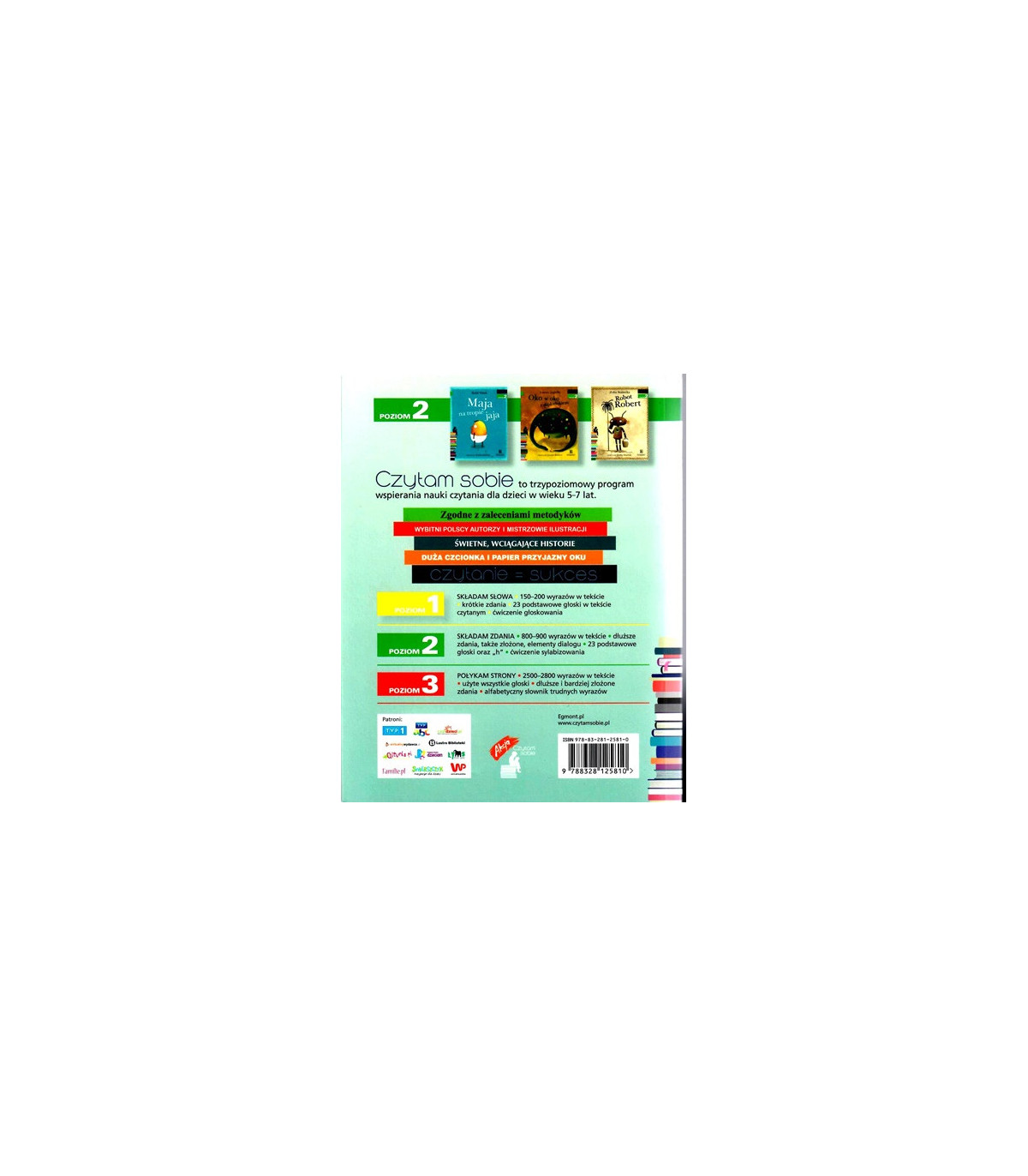 Czytam sobie to trzypoziomowy program literacki wspierający naukę czytania, przeznaczony przede wszystkim dla dzieci w wieku 5-7 lat. Autorami tekstów są wybitny polscy pisarze i poeci, a ilustracje stworzyli najlepsi graficy. Książki z drugiego poziomu serii oswajają dzieci z dłuższymi zdaniami, a także wprowadzają elementy dialogu. Bardzo duża czcionka ułatwia czytanie, a zamieszczone obok tekstu ramki pozwalają ćwiczyć sylabizowanie.