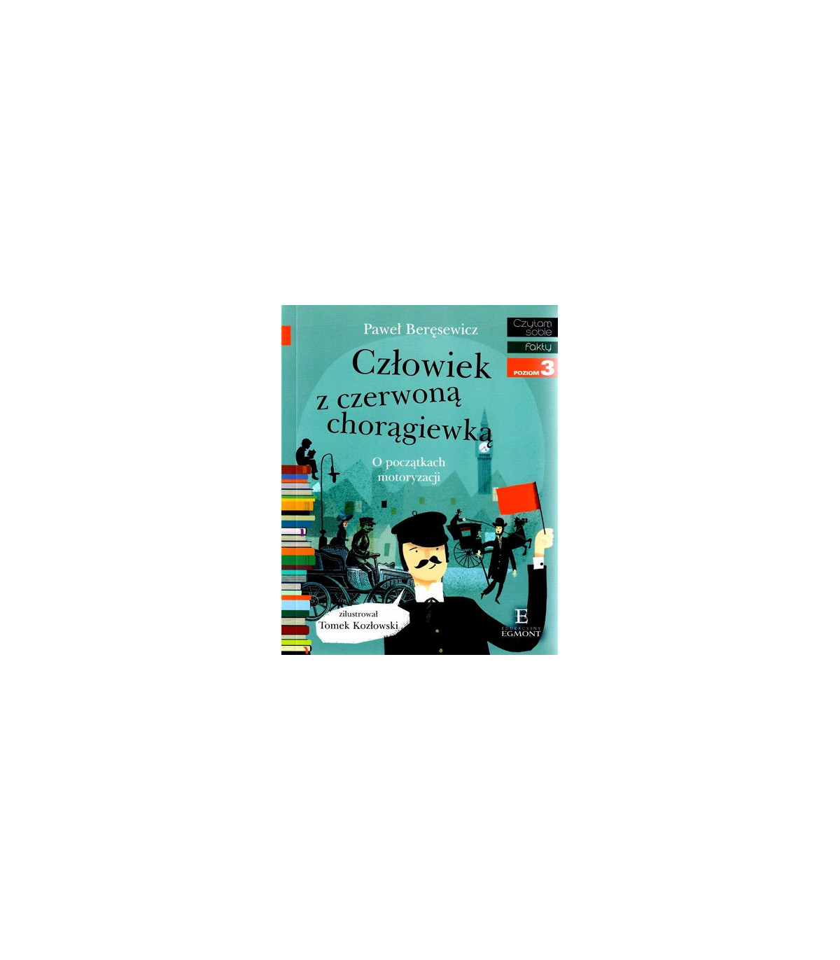Człowiek z czerwoną chorągiewką Pawła Beręsewicza to opowieść o początkach motoryzacji i pierwszych samochodach. Książka wchodzi w skład wspierającej naukę czytania serii Czytam sobie (poziom 3). Należy ona również do zbioru historii opartych na faktach, czyli Fakty. Poczytaj sobie historie prawdziwe!