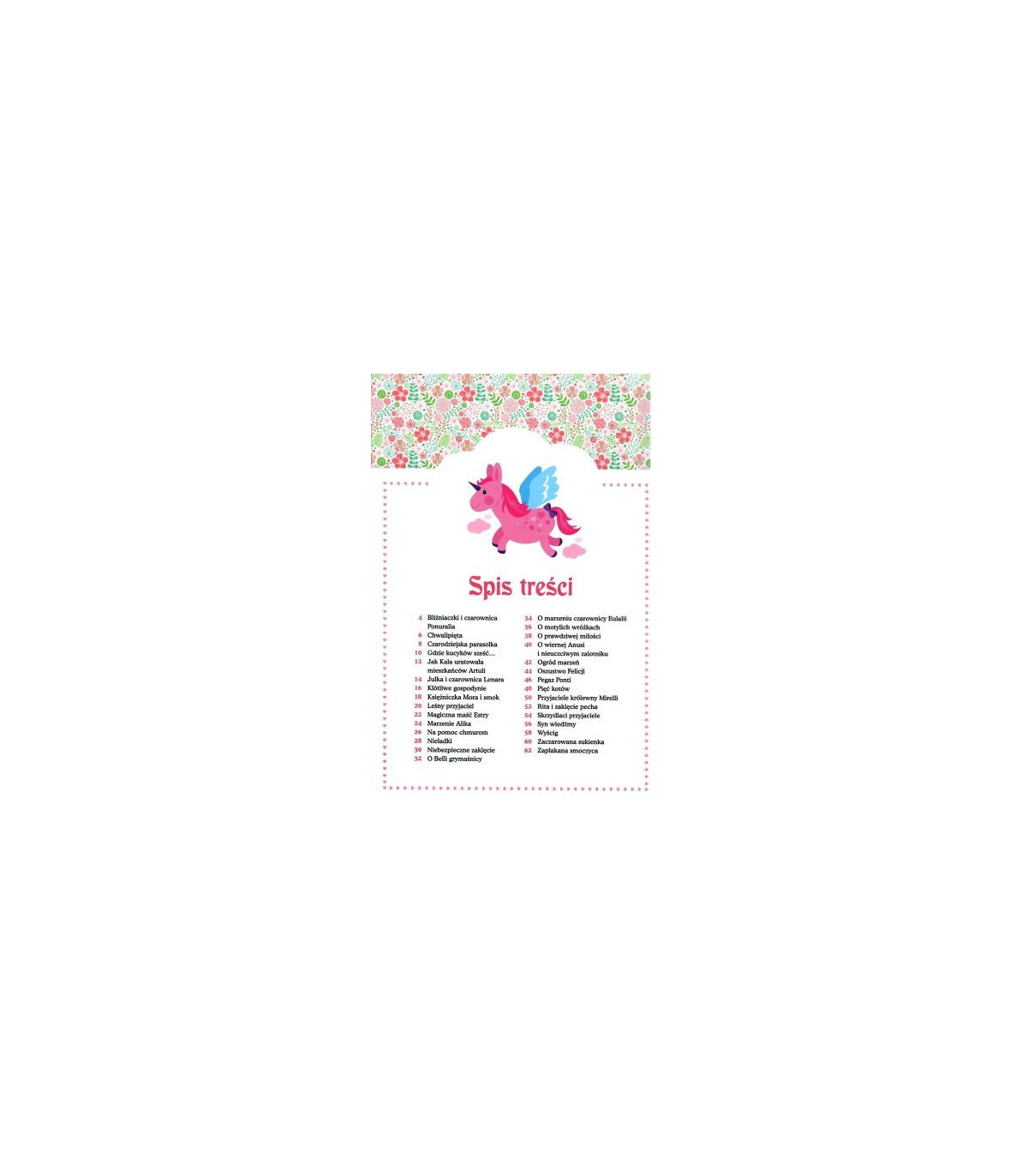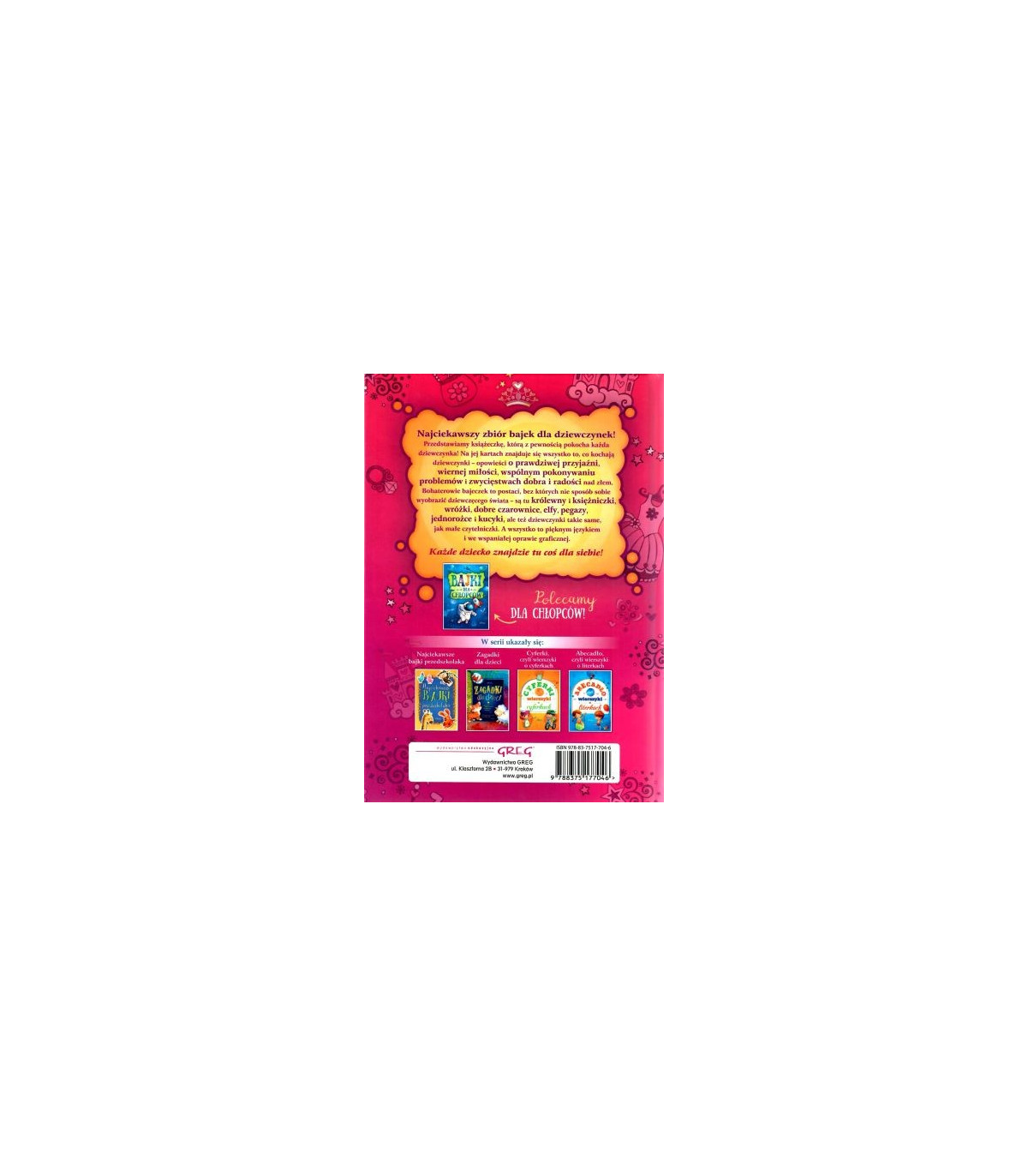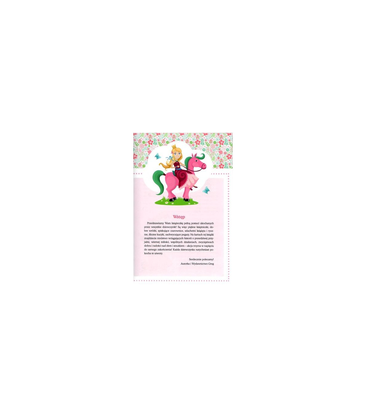 Przedstawiamy książeczkę, która z pewnością spodoba się każdej dziewczynce! Znajdują się w niej krótkie, ciekawe opowieści, pełne motywów i tematów uwielbianych przez małe czytelniczki - piękne historie o przyjaźni, wzruszające opowieści o miłości, współpracy i wspólnej walce ze złem. Są tu więc piękne królewny i księżniczki, dobre wróżki, złe czarownice, dzielni książęta i królewicze, kucyki, pegazy, a także zwyczajne dziewczęta. Najważniejsze jednak, że wszystko zawsze dobrze się kończy! Dziewczynki nie będą mogły rozstać się z tą książką!