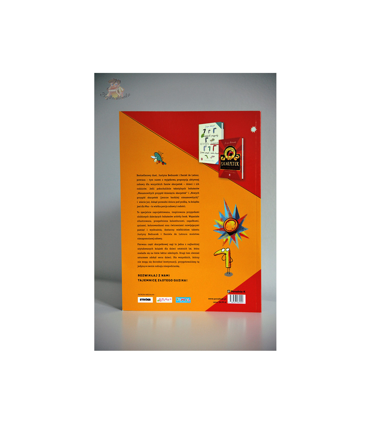 Wyjątkowa i wyczekana książka z zadaniami dla wszystkich fanów skarpetek. Pozwoli doczekać bez zniecierpliwienia do kolejnej premiery o przygodach tekstylnych bohaterek. Dzieci czeka mnóstwo pracy - dokończenie opowiadania, rozwiązanie krzyżówki, znalezienie wyjaśnienia zagadki detektywistycznej, łamigłówki i rebusy – na każdej stronie czeka nowa przygoda. Świat poza pralką jest pełen niespodzianek i zaskoczeń. Tu nie ma miejsca na nudę, jest humor i wspaniała zabawa!