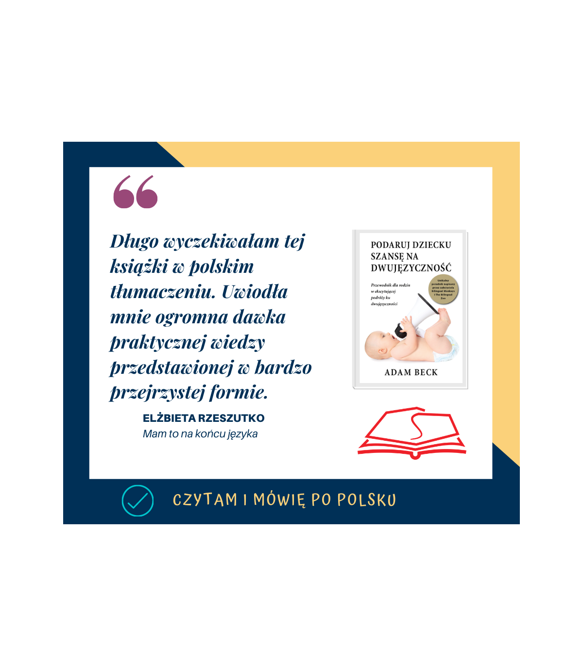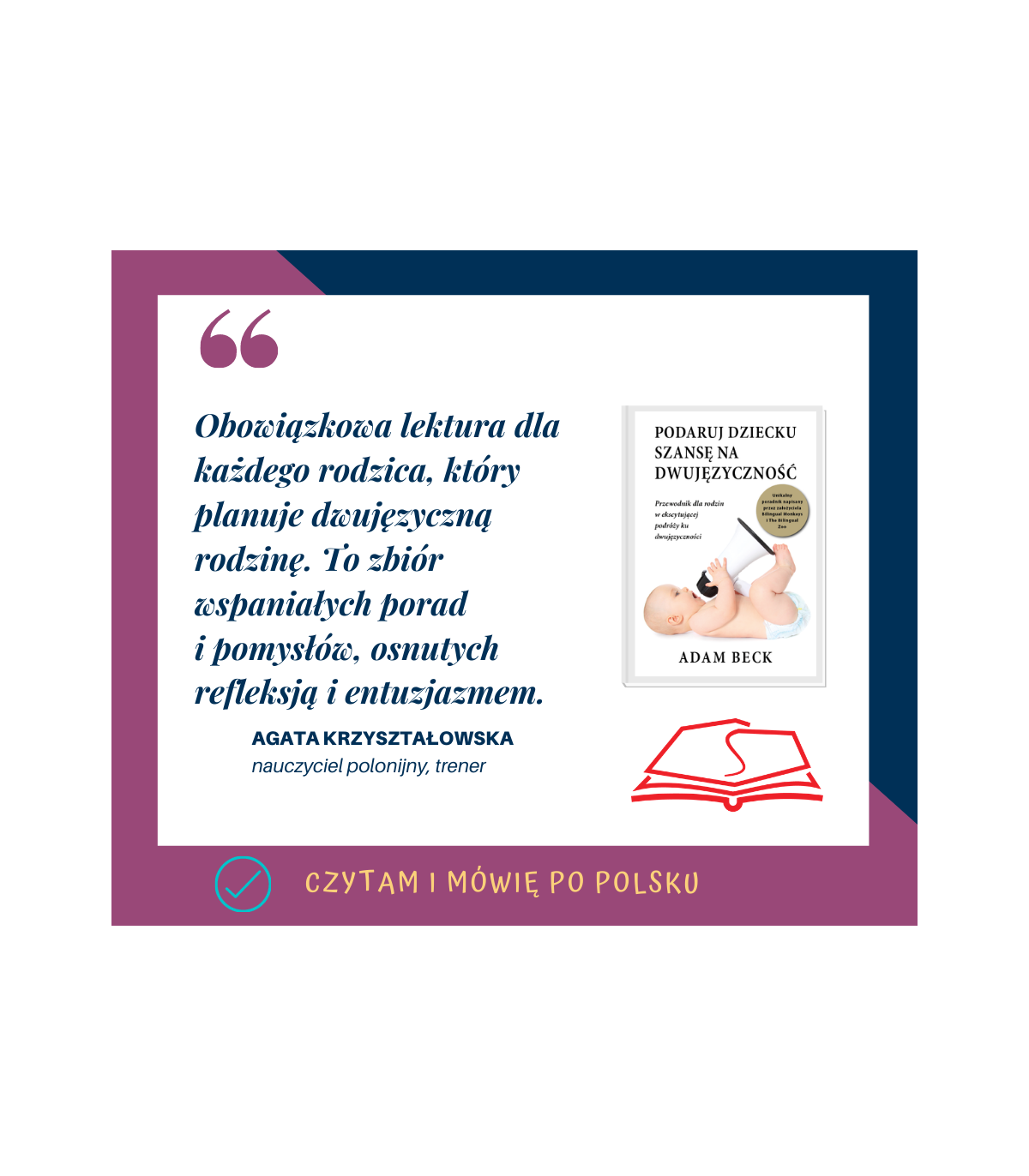 Książka napisana bardzo przystępnym językiem. Czyta się szybko, jest bardzo lekka w lekturze. Dokładnie czegoś takiego szukałam. Jako pracująca mama trójki dzieci staram się dać dzieciom jak najwięcej czasu. Język polski jest dla mnie ważny, jest to nasz język mniejszościowy. Gdy dzieci były mniejsze łatwiej było utrzymywać język polski w użyciu, jednak gdy dzieci zaczęły przedszkole i szkołę, jest trochę trudniej, gdyż naturalnie dziecko wybiera język łatwiejszy dla niego. Dzięki książce będę miała więcej narzędzi i pomysłów, aby dzieciaki miały styczność z językiem polskim. Polecam książkę bardzo serdecznie!