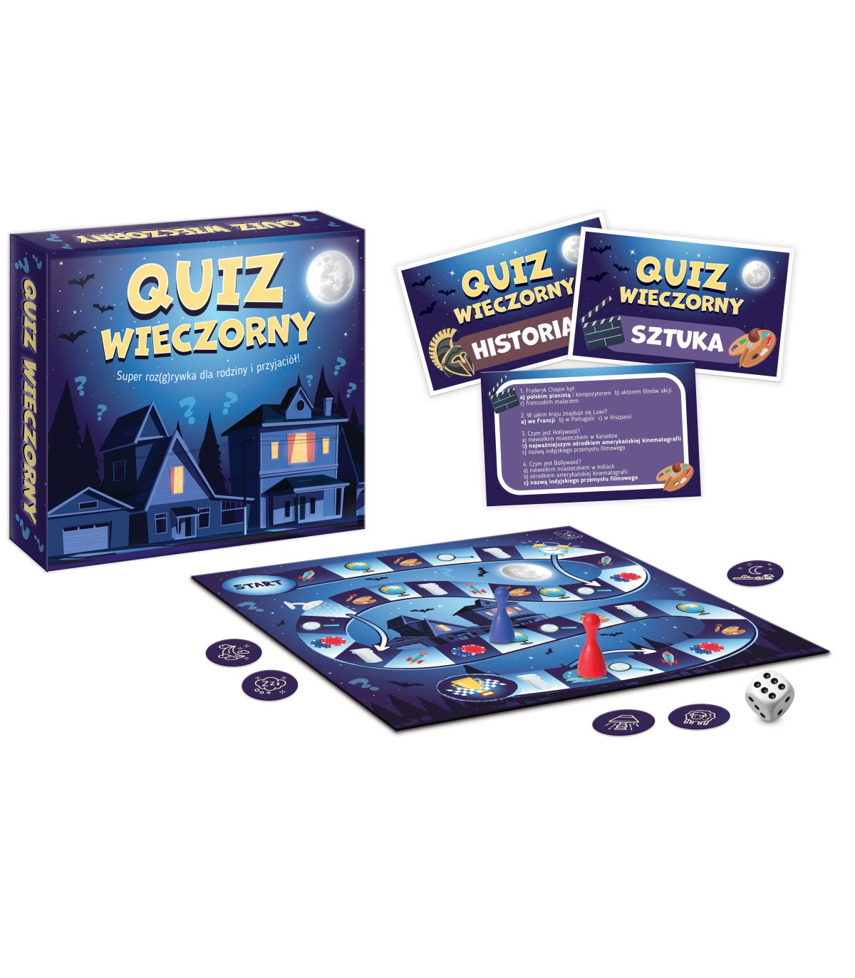 Skąd pochodzi Pippi Pończoszanka? Gdzie odbyła się rewolucja goździków? Jaką muzykę tworzył Bob Marley? Gdzie rosną pomarańcze? Co kręci Was najbardziej? Geografia? Technika i wynalazki? Historia? Sztuka? A może muzyka labo film? Spędź wieczór w rodzinnym gronie lub ze znajomymi i poszerz swoje horyzonty! Zagrajcie i odkryjcie, w czym jesteście naprawdę mocni!
