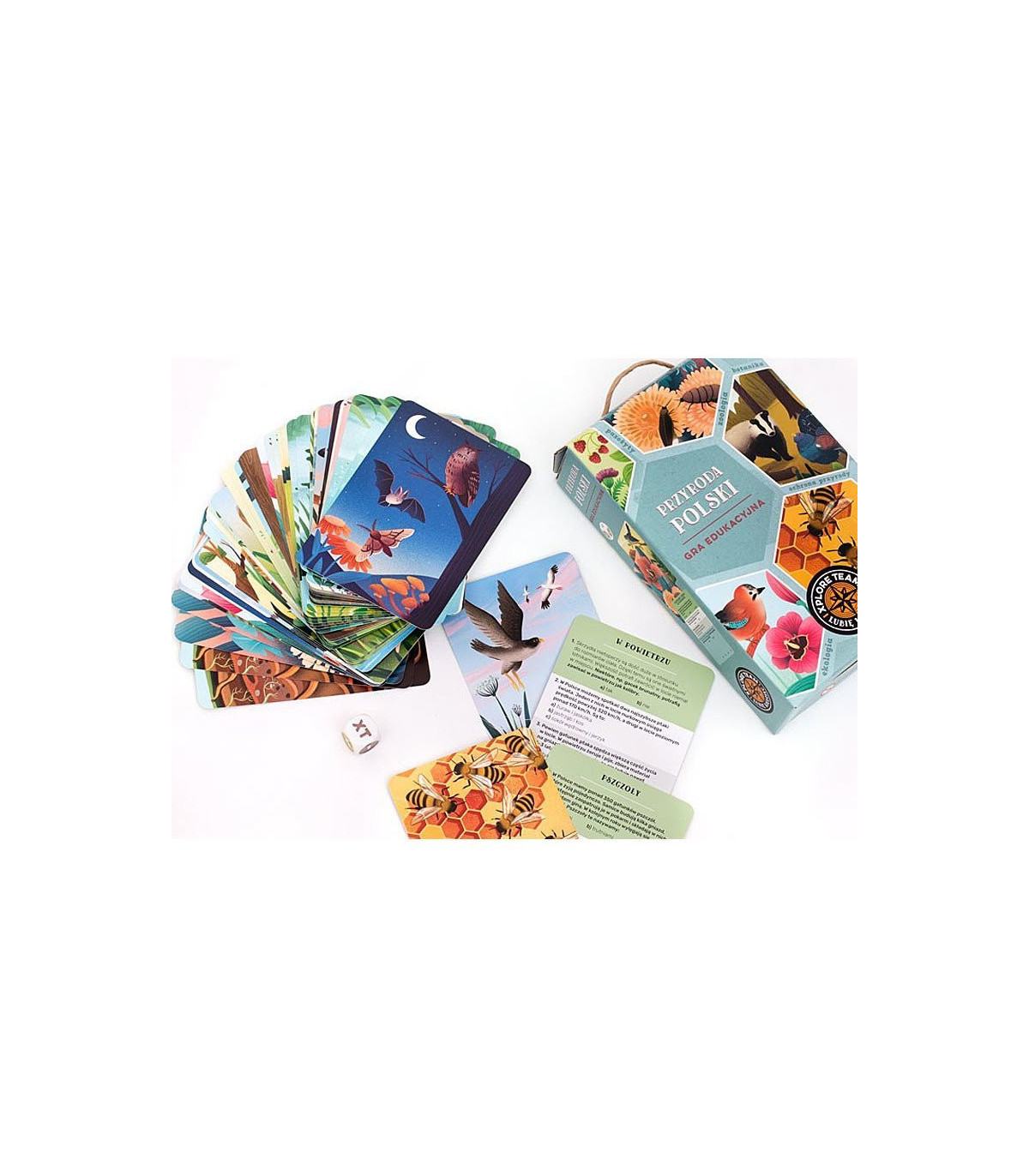 Edukacyjna gra quizowa dla uczniów pozwala na zabawę na wiele sposobów. Zestaw zawiera 56 pięknie zilustrowanych kart z 224 pytaniami i odpowiedziami oraz specjalną kostkę. Proste reguły i możliwość tworzenia własnych zasad pozwolą wam sprawdzać i poszerzać wiedzę o przyrodzie w pełen emocji sposób.
