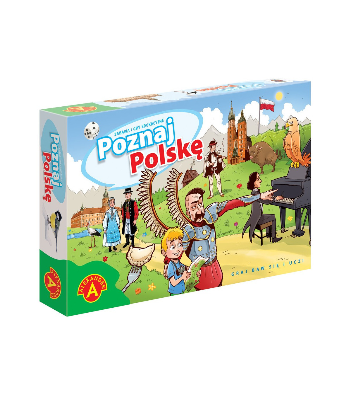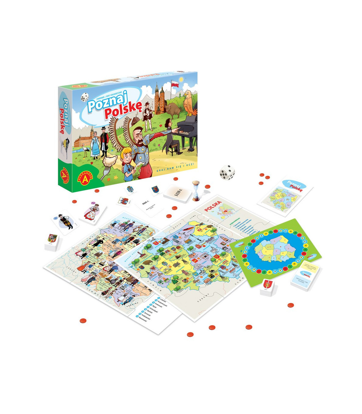 Łatwa forma zdobywania i przyswajania wiedzy z zakresu historii, geografii, przyrody i zwyczajów narodowych. Wiedza potrzebna do przeprowadzenia rozgrywki zawarta jest w załączonym do zestawu folderze. Wiadomości o Polsce uzupełniają dwie plansze składane z dwustronnych puzzli, przedstawiające mapy Polski z podziałem