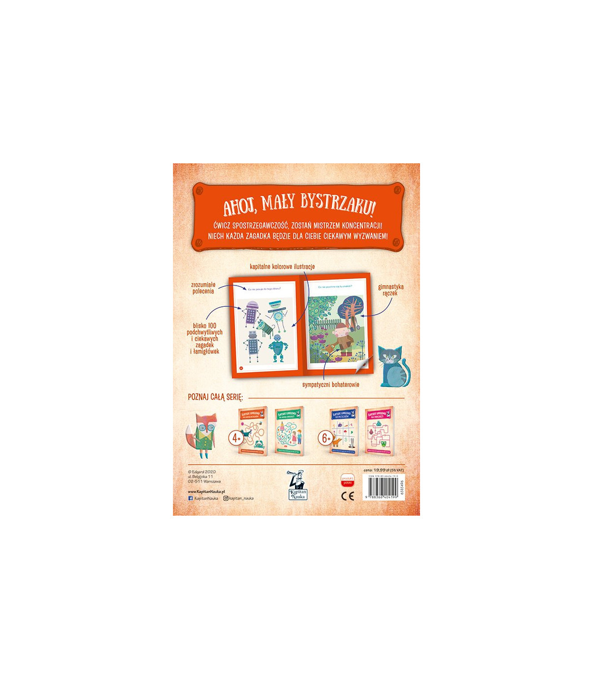 Małe bystrzaki poznają litery, nauczą się liczyć w zakresie 10 oraz odczytywać szyfry, czyli szukać wzoru wśród ciągu symboli rysunkowych, a wszystko to w formie zabawy. Zadania będą również doskonałą zachętą do gimnastyki rączki. Dzięki zabawom grafomotorycznym przedszkolaki rozwiną motorykę małą niezwykle ważną w nauce pisania. Sympatyczni bohaterowie narysowani przez Ewę O'Neill będą towarzyszyć przedszkolakom w kapitalnej przygodzie po świecie liter, liczb i symboli rysunkowych, pobudzając jednocześnie ich ciekawość i wyobraźnię.