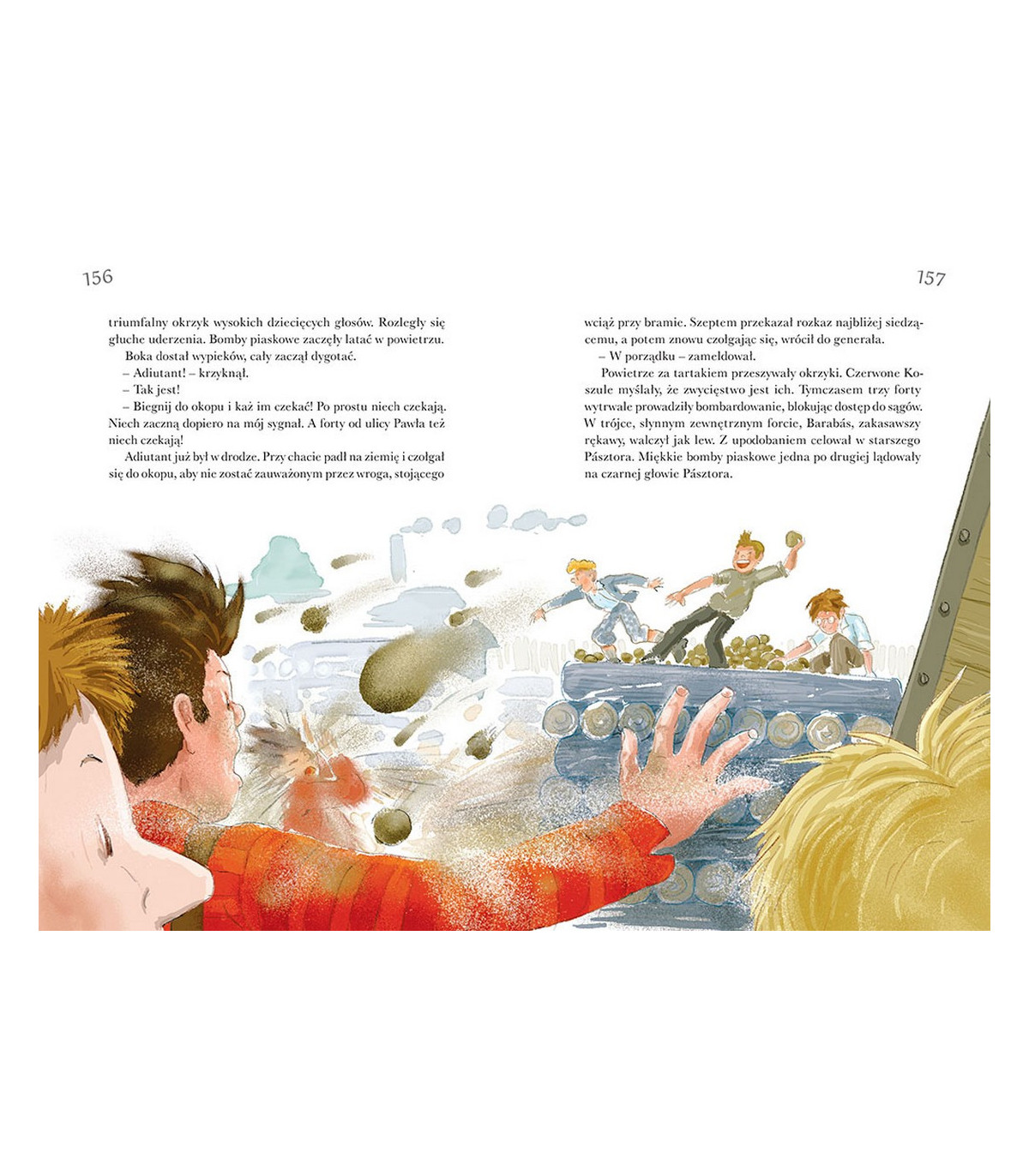 Inna grupa chłopców, Czerwone Koszule, chce zająć Plac Broni, aby móc grać na nim w palanta. Przywódcą tej grupy jest Feri Acz. Walki pomiędzy chłopcami o prawo do Placu Broni, znaczącego dla nich więcej niż zwykły plac dziecięcych zabaw, stanowią oś fabuły powieści.