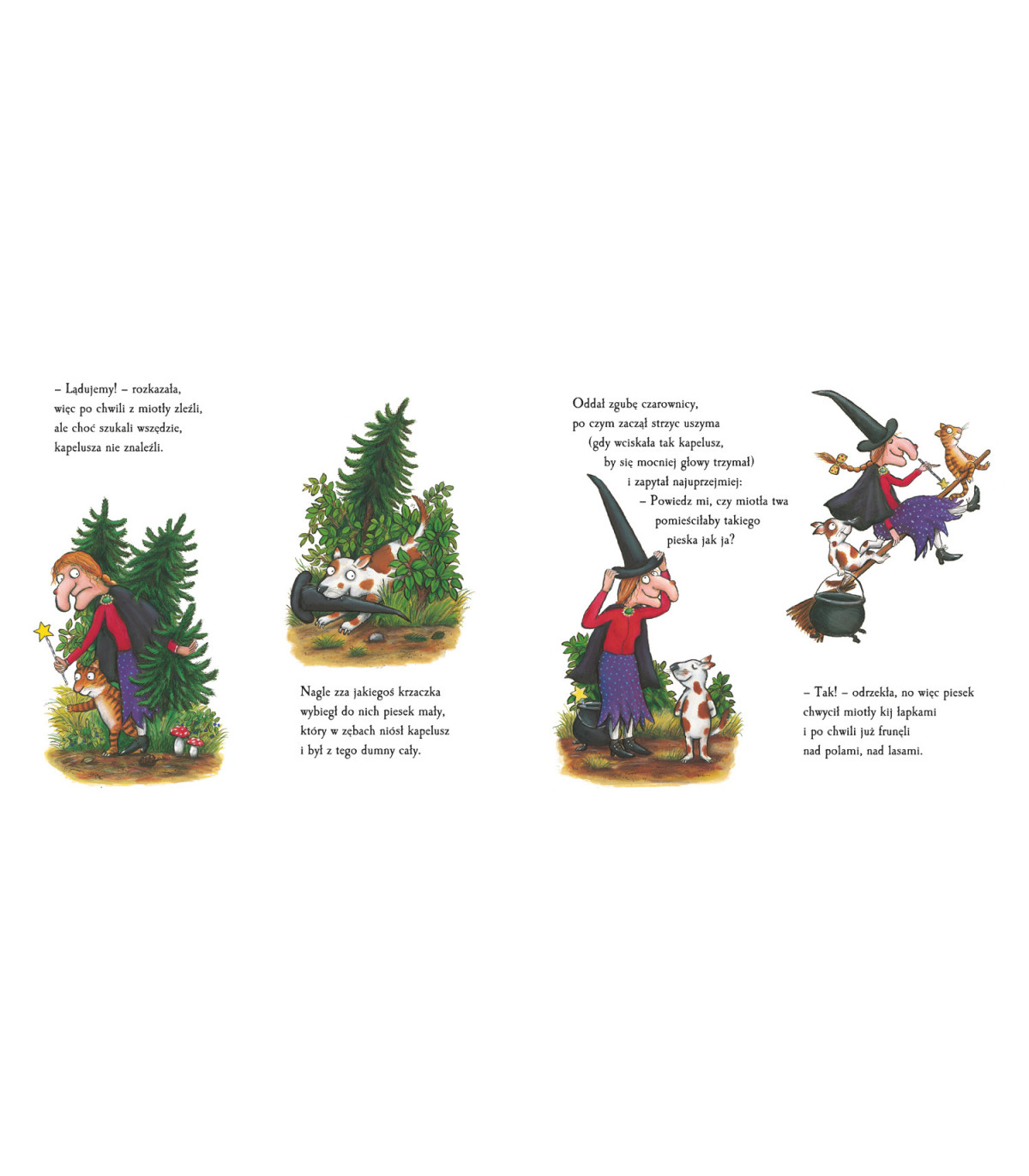 Do czarownicy, która leci na miotle razem ze swoim kotem, dosiadają się pies, ptaszek i żaba. Pod wpływem ciężaru miotła pęka, a bohaterowie spadają wprost na wygłodniałego smoka. Czy zdołają go przechytrzyć?