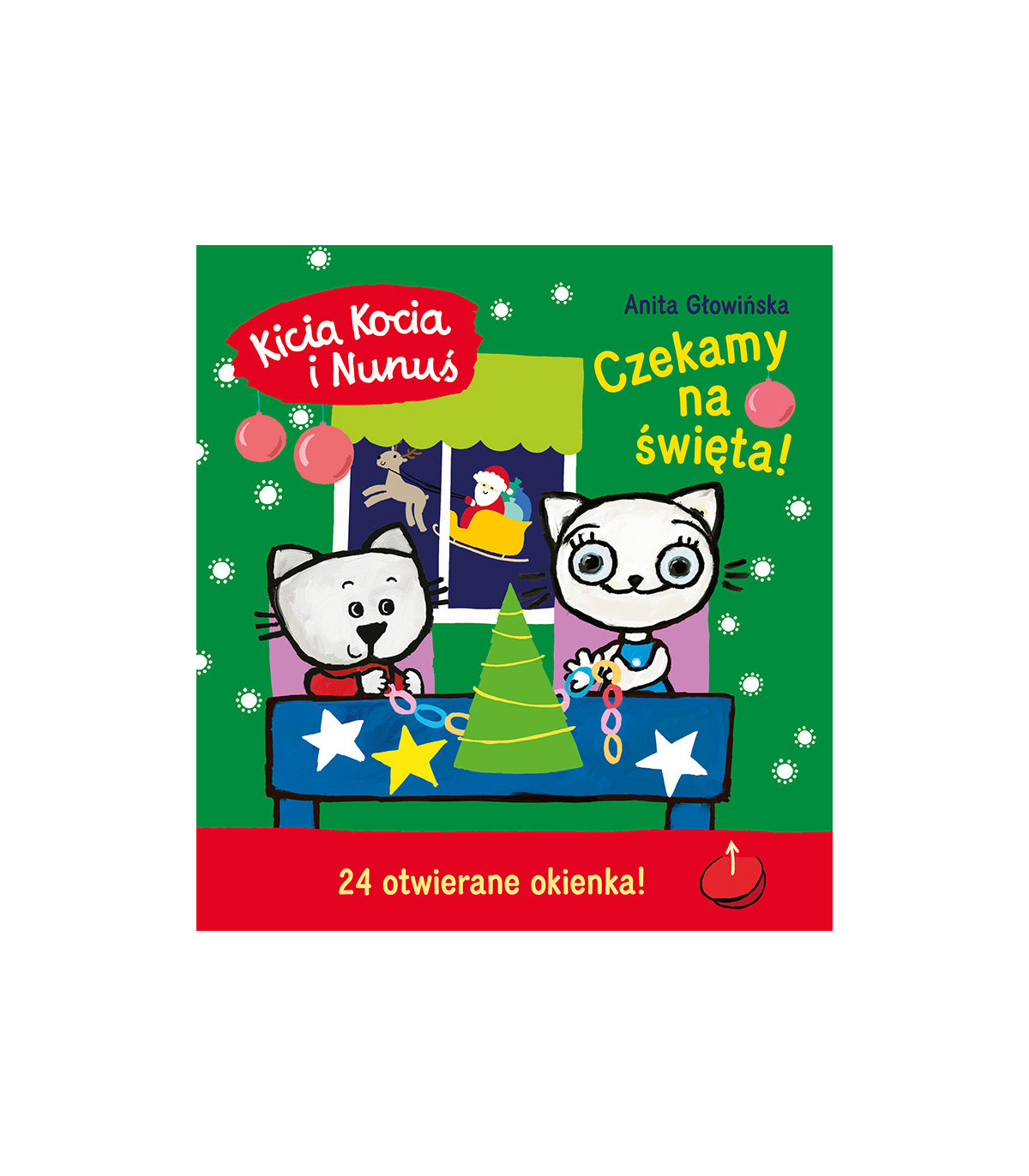 Świąteczny czas w towarzystwie Kici Koci i Nunusia. Książeczka dla dzieci „Kicia Kocia i Nunuś. Czekamy na święta!” umili całej rodzinie czas oczekiwania na pierwszą gwiazdkę. Zawiera 24 otwierane okienka, które pełnią rolę kalendarza adwentowego. Codziennie wraz z Kicią Kocią i Nunusiem odkrywajcie, co ukryło się pod okienkiem, i wykonujcie zadania, a Gwiazdka nadejdzie szybciej! W książeczce „Kicia Kocia i Nunuś. Czekamy na święta!” nie zabraknie także opowiadań o przygodach Kici Koci, Nunusia i ulubionych przyjaciół.