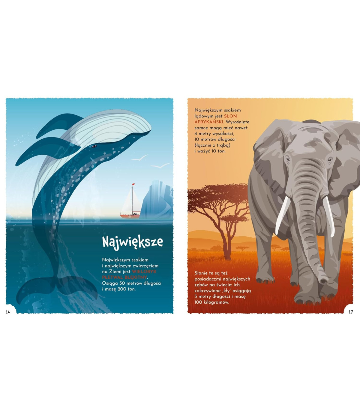 Aby zaspokoić dziecięcą ciekawość, przy każdym zwierzęciu zamieszczono krótką charakterystykę, ilustrację pokazującą, jakich jest rozmiarów. Książka rozbudza dziecięcą wyobraźnię i wzbogaca ich wiedzę dotyczącą świata przyrody.