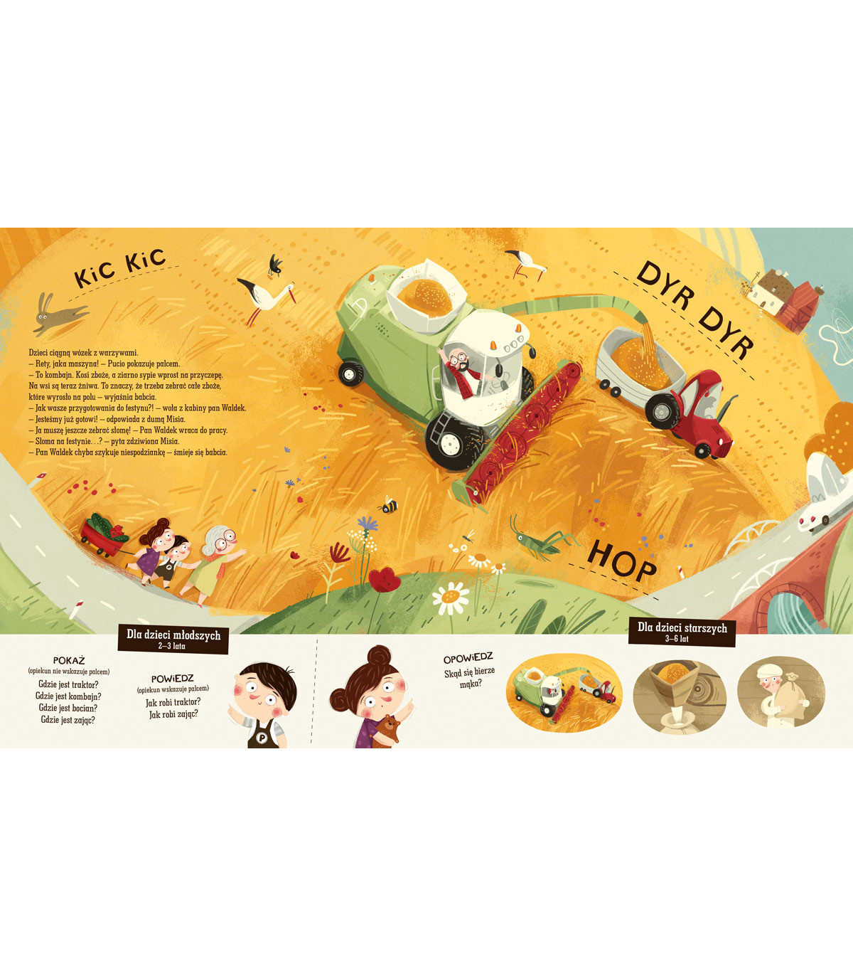 Wybierzcie się na wieś z Puciem i Misią. Odwiedźcie gospodarstwo pana Henryka, stadninę pani Ewy oraz pracownię ceramiczną pani Moniki. Zobaczcie, jak się zbiera miód, i upieczcie wspaniały sękacz na festyn. Na pewno nie będziecie się nudzić!