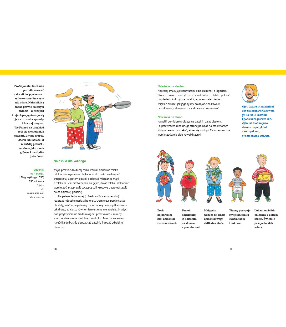 Dowiedzą się też, jak wyhodować własne zioła, jak poradzić sobie z dziurami w naleśnikach czy jak siać rzodkiewki, żeby nie trzeba ich było potem zjeść wszystkich na raz. A nawet – jak zrobić własną książkę kucharską!