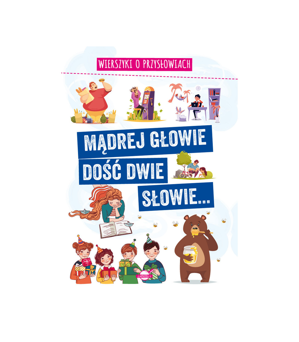 Mądrej głowie dość dwie słowie… to zbiór rymowanych wierszyków o przysłowiach. W tej książce w poetyckiej formie zaprezentowano najpopularniejsze polskie przysłowia oraz ich znaczenie. Młodzi czytelnicy dowiedzą się m.in. dlaczego nie święci garnki lepią, a fortuna kołem się toczy. Poznają znaczenie przysłowia bez zachodu nie ma miodu czy lepszy rydz niż nic. Całość wzbogacają kolorowe, korespondujące z tekstem ilustracje.