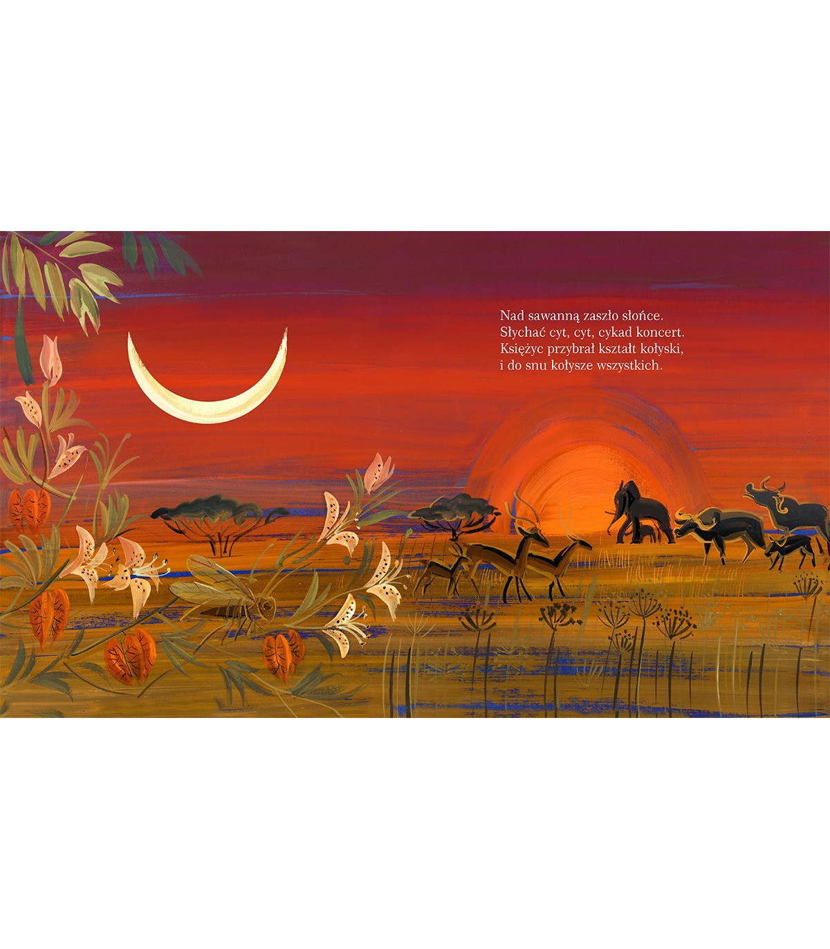 Śliczna usypianka dla najmłodszych i trochę starszych. Wierszyk o afrykańskich zwierzętach ilustrowany pięknymi akwarelami Małgorzaty Flis.