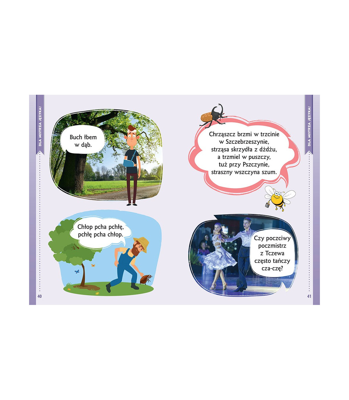 Te łamańce językowe są idealne do ćwiczenia prawidłowej dykcji i dbałości językowej. Zabawy tego typu są polecane przez wychowawców i logopedów. Książeczka zawiera skalę trudności, która pozwala na sprawdzenie swoich umiejętności oraz na rywalizację, kto jest prawdziwym mistrzem języka!
