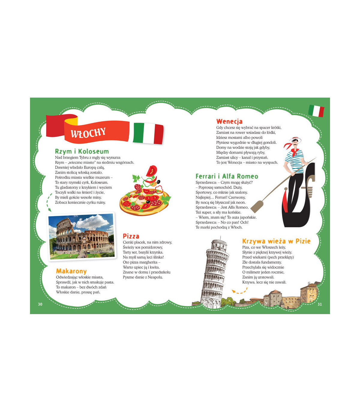 Książkę otwiera mapa, gdzie zaznaczone zostały wszystkie opisane kraje. Serdecznie polecamy dla dzieci i dorosłych do wspólnej zabawy i odkrywania świata!