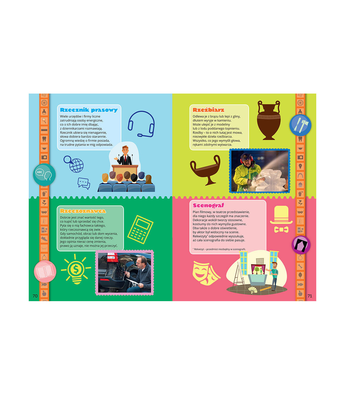 Dzieci zwykle żywo interesują się tym, jaki zawód wykonują ich rodzice, dziadkowie i inni znani im dorośli. Czasem łatwo wytłumaczyć, na czym polega ich praca, ale są też zawody, które trudniej jest prosto opisać. Przedstawiamy książeczkę, która w formie łatwych do zrozumienia, krótkich wierszyków wyjaśnia, czym zajmują się przedstawiciele ponad 170 zawodów - od bardzo tradycyjnych do nietypowych i nowoczesnych.