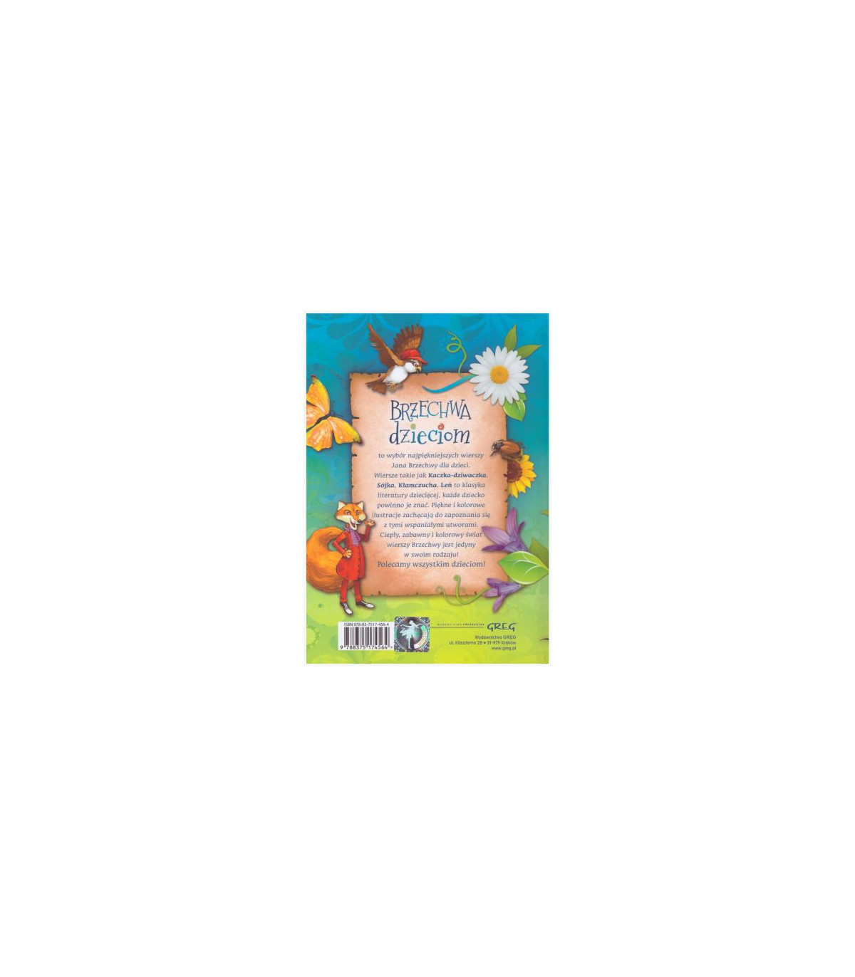 Wydanie w serii Kolorowa Klasyka zawiera szeroki wybór najpiękniejszych wierszy Jana Brzechwy dla dzieci - utwory jak Kaczka-dziwaczka, Sójka, Kłamczucha, czy Leń - to klasyka literatury dziecięcej, bez której dzieciństwo wielu z nas nie byłoby takie samo!