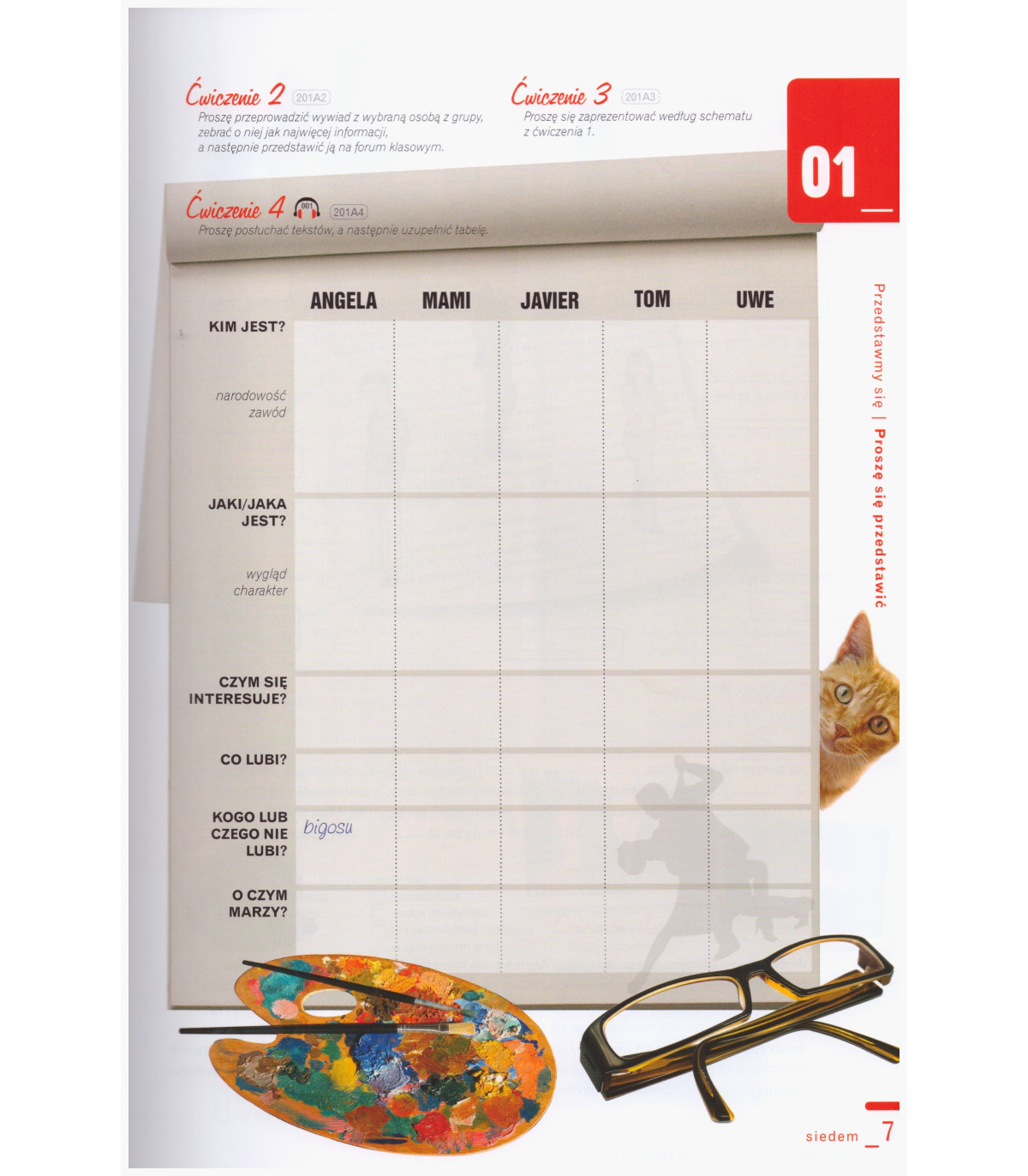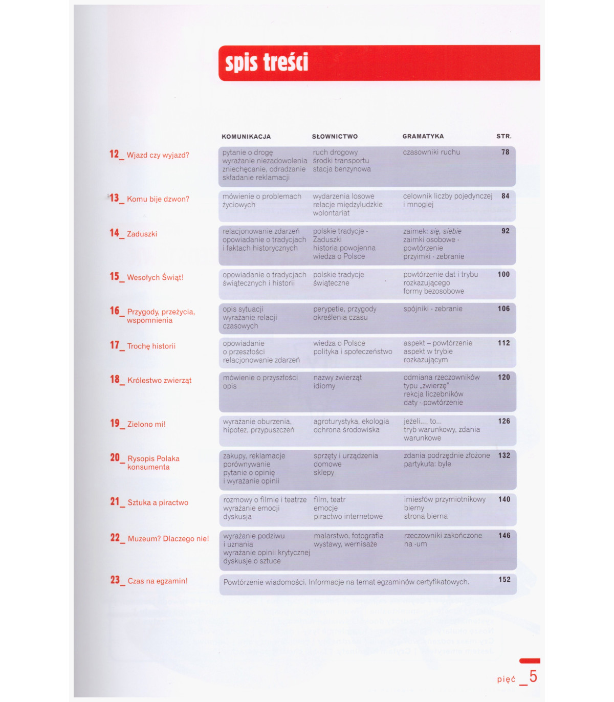Similarly to the first part, new vocabulary and grammar problems are introduced in the context. However, in addition to dialogues, there are numerous texts based in part on authentic dialogues or adapted to resemble them. In addition to excerpts from press articles, interviews, texts on sightseeing, one will find here biographies, e-mails, cover letters and even an excerpt from the speech of General Jaruzelski given on 13 December 1981.