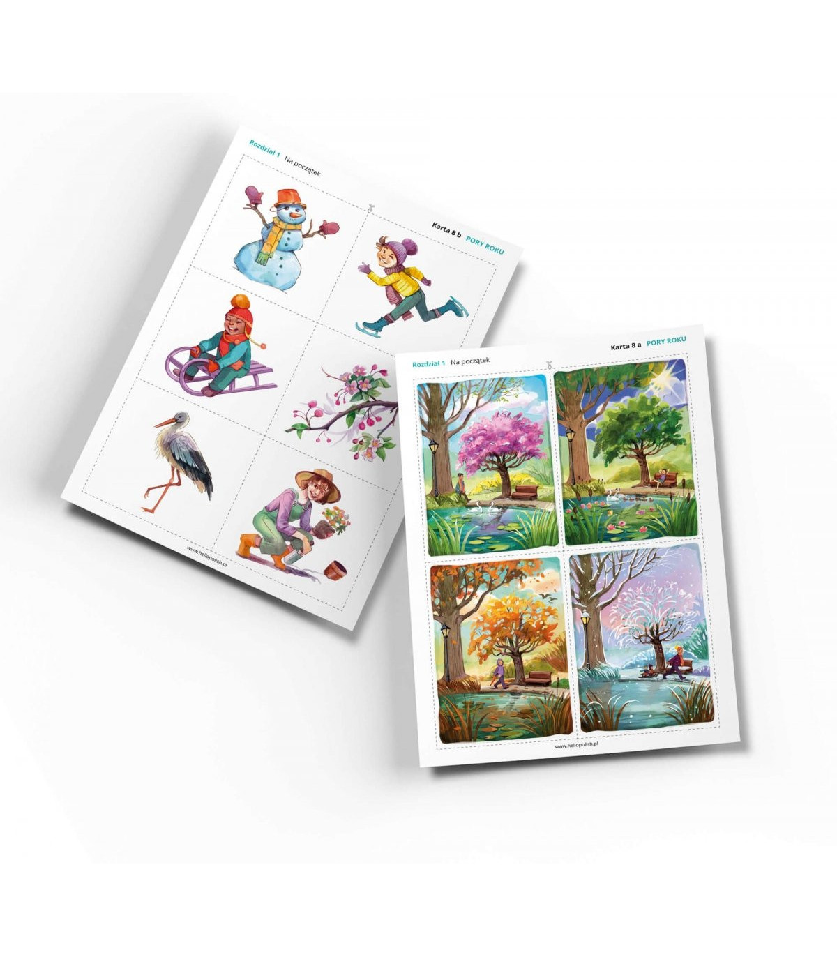 W teczce znajduje się 58 kart ilustrowanych oraz Przewodnik dla rodzica z gotowymi propozycjami zabaw. Dodatkowo do zestawu dołączone są krótkie filmiki, w których autorka, Sandra Walecka, pokazuje wybrane zabawy. Link do filmików znajduje się w Przewodniku dla rodzica.