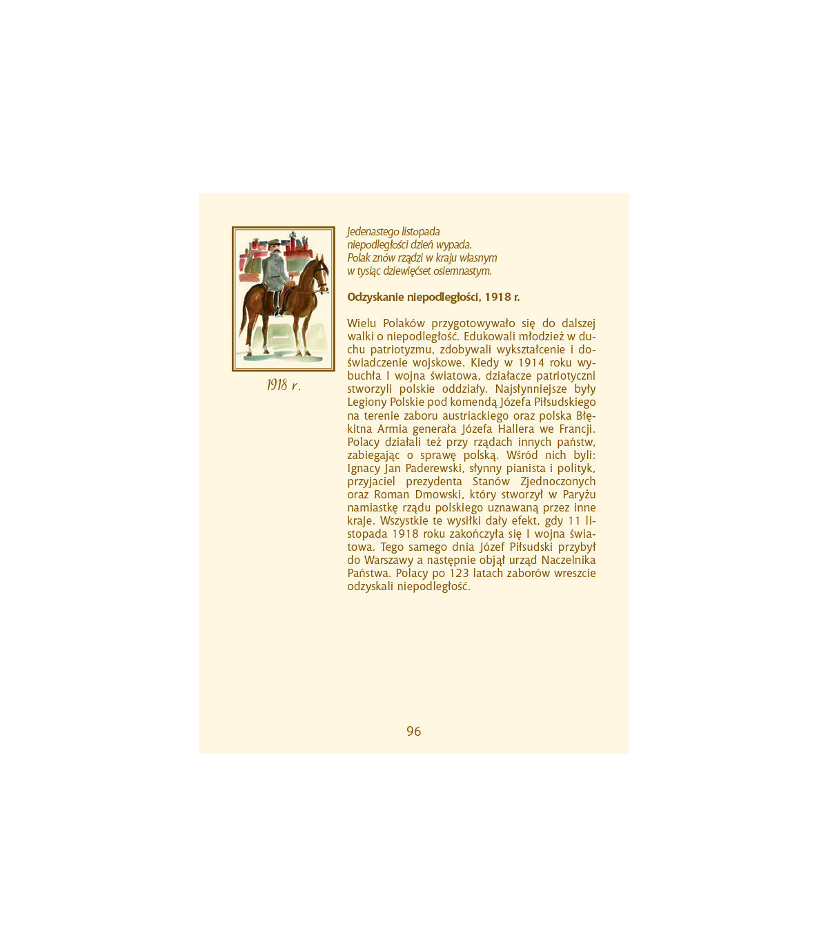 Wpadające w ucho wierszyki o najważniejszych wydarzeniach z historii Polski, ilustrowane pięknymi akwarelami Małgorzaty Flis. Autor, z wykształcenia historyk, opowiada o wydarzeniach w atrakcyjnej formie. Data jest w wierszyku zrymowana a przez to bardzo łatwa do zapamiętania. Pomaga uporządkować wiedzę historyczną.