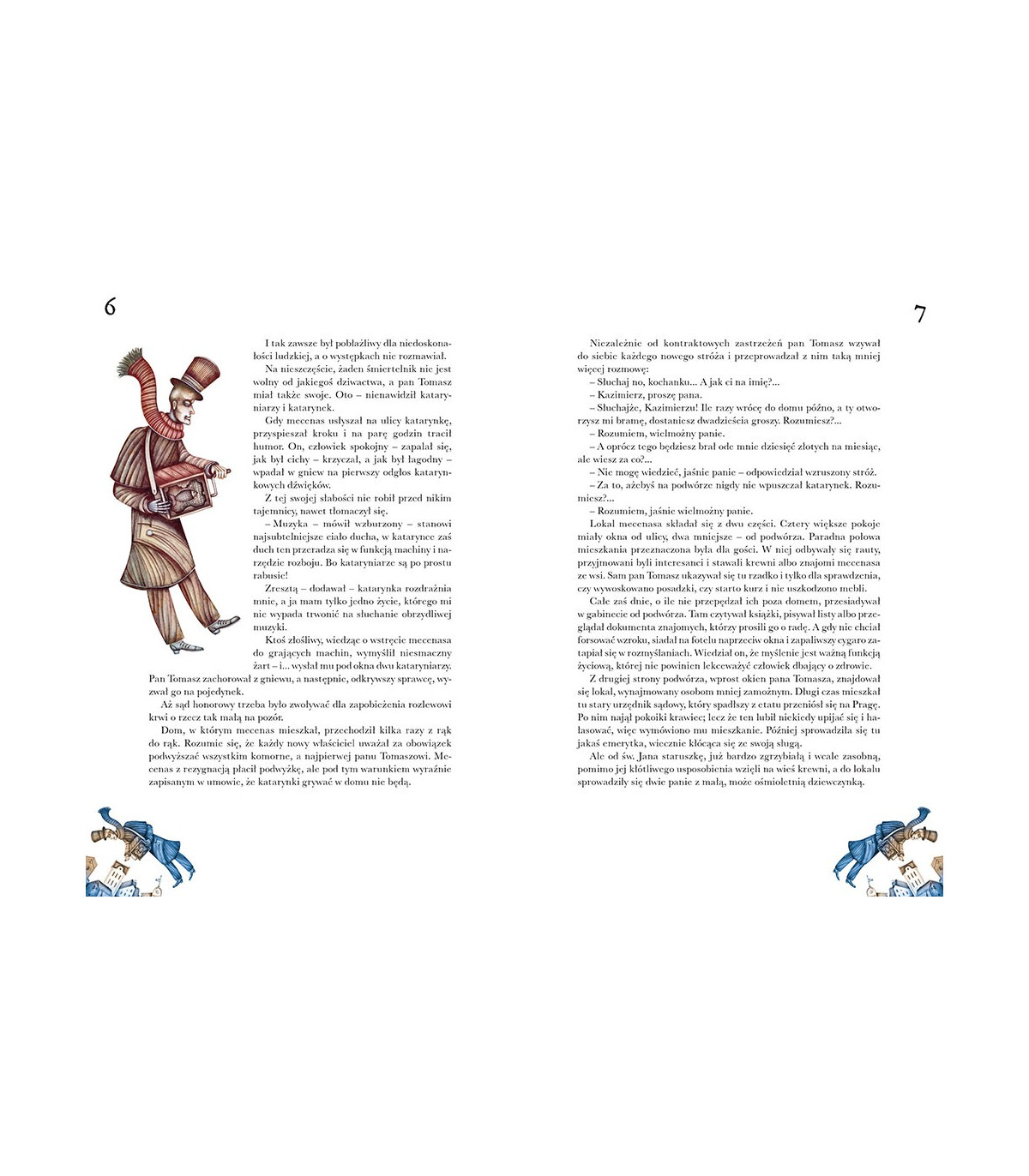 Pan Tomasz prowadzi spokojne, unormowane życie, otacza się pięknymi przedmiotami, jest znawcą muzyki i sztuki. Nic dziwnego, że nie znosi podwórzowych katarynek z ich hałaśliwymi, krzykliwymi melodiami.