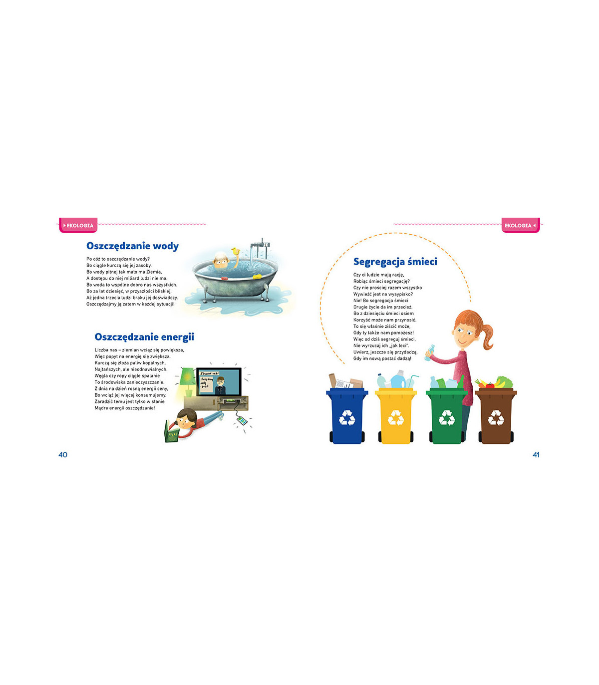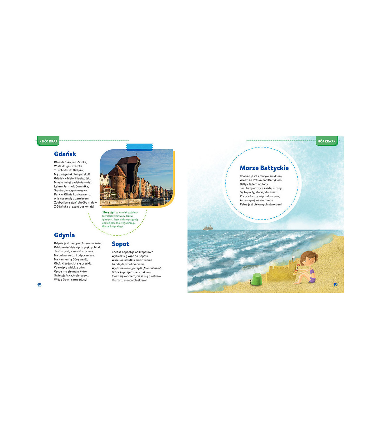 Proste i łatwe do zrozumienia wierszyki podzielone na grupy tematyczne prezentują ciekawe zagadnienia z wielu dziedzin - są tu informacje o kosmosie i Ziemi, o Polsce i jej najważniejszych miastach, o polskich zwierzętach, o porach roku i zjawiskach przyrody, o dobrych manierach i zasadach bezpieczeństwa.