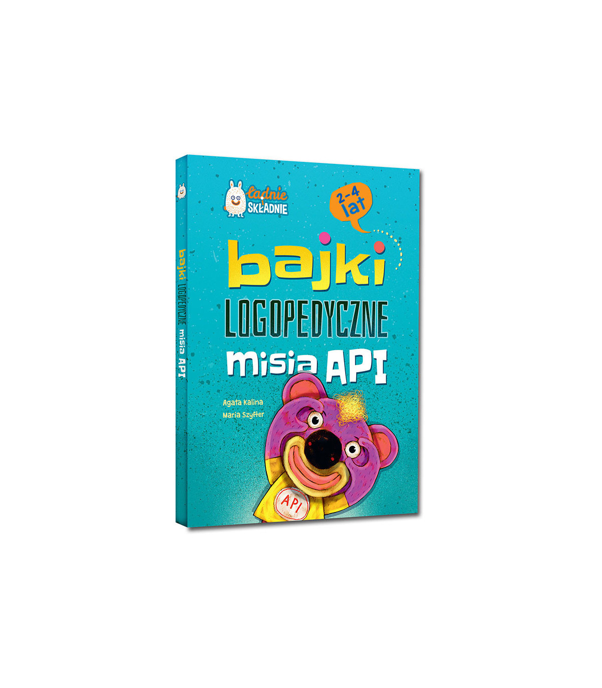 Kto to jest miś API? To przyjaciel każdego dziecka, niesforny i pocieszny łobuziak, który przeżywa liczne przygody ze swoimi przyjaciółmi. Ten wesoły towarzysz każdej bajki pomoże dziecku wytrenować narządy artykulacyjne, wyćwiczyć wszystkie głoski tak, że niepostrzeżenie mowa dziecka stanie się poprawna.