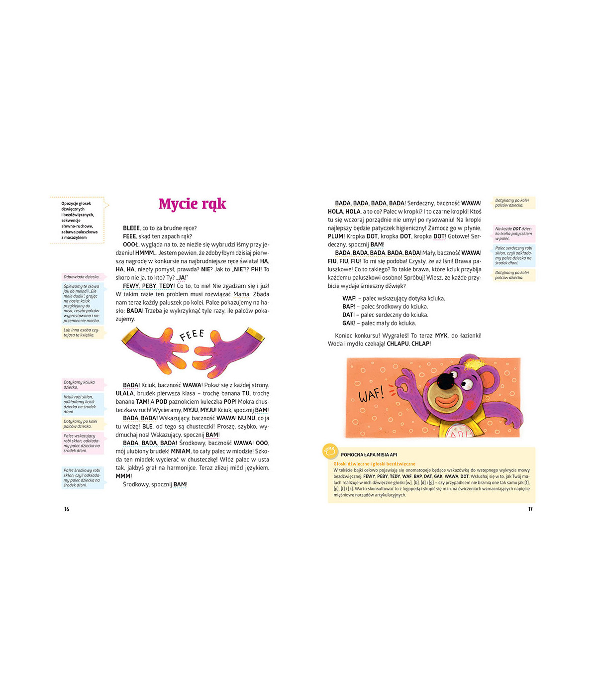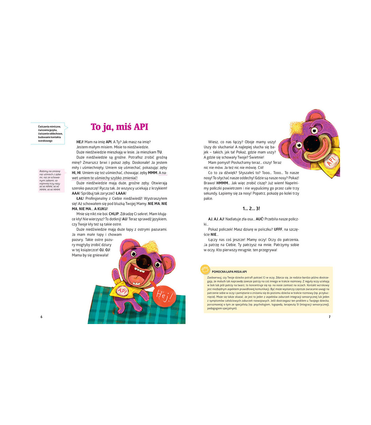 W tej pięknie ilustrowanej książce znajduje się pacynka misia API, gotowa do zabawy. Polecamy wszystkim rodzicom, logopedom, terapeutom!
