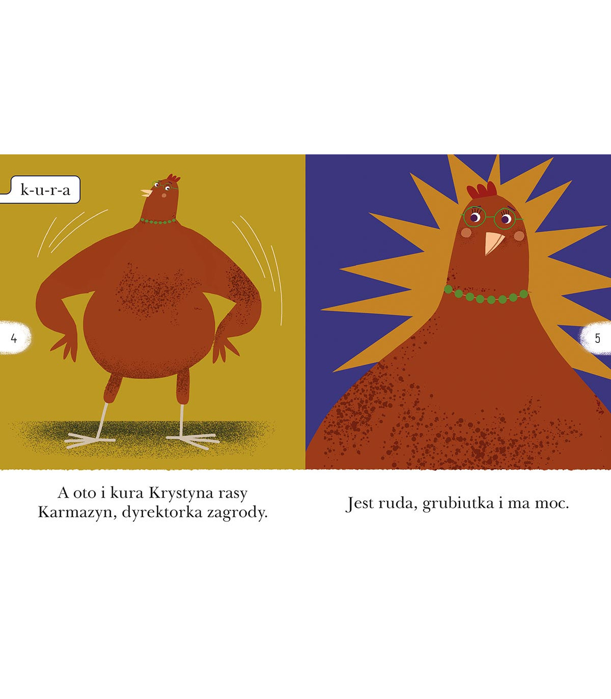 Kura Krystyna to dyrektorka zagrody „Stokrotka”. Jest ruda, grubiutka i mądra! Cieszy się szacunkiem i sympatią wszystkich mieszkańców. Dlatego kiedy wpada w tarapaty, indyk i kogut nie wahają się ani chwili, by jej pomóc.