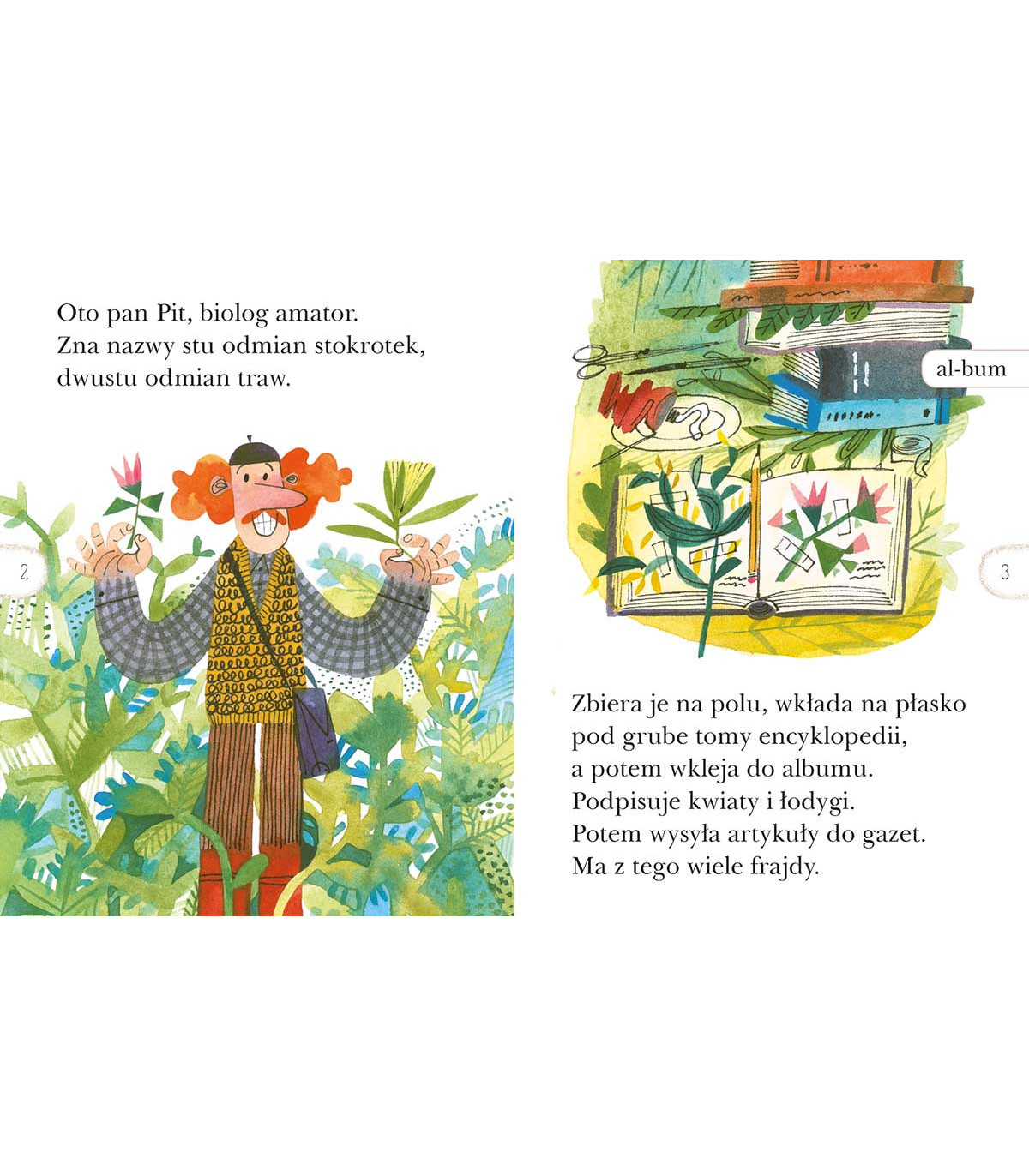 Pan Pit jest botanikiem – niestrudzonym poszukiwaczem nowych odmian stokrotek. Przemierza łąki, obserwuje, notuje, fotografuje.
