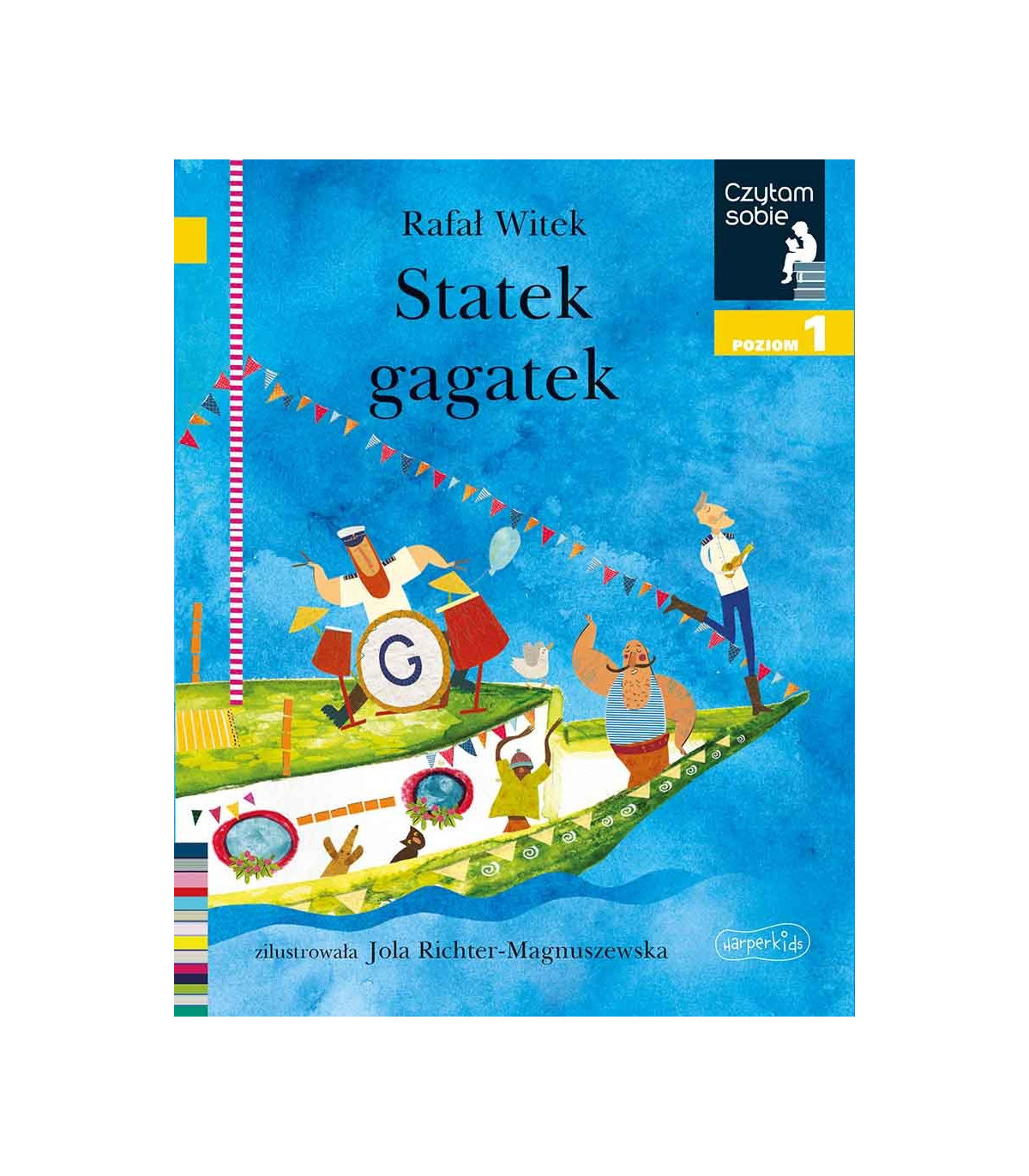 Rejs Gagatkiem to nie lada przygoda. Statek jest kolorowy, kapitan muzykalny, posiłki przepyszne, a pasażerowie jedyni w swoim rodzaju. Nic więc dziwnego, że podróż obfituje w niespodzianki. Czy załodze uda się dotrzeć do Honolulu? Ahoj przygodo! „Statek Gagatek” Rafała Witka to słoneczna opowieść dla tych czytelniczek i czytelników, którzy dopiero uczą się składać słowa. Baloniki i lampki na rufie Gagatka narysowała Jola Richter-Magnuszewska.