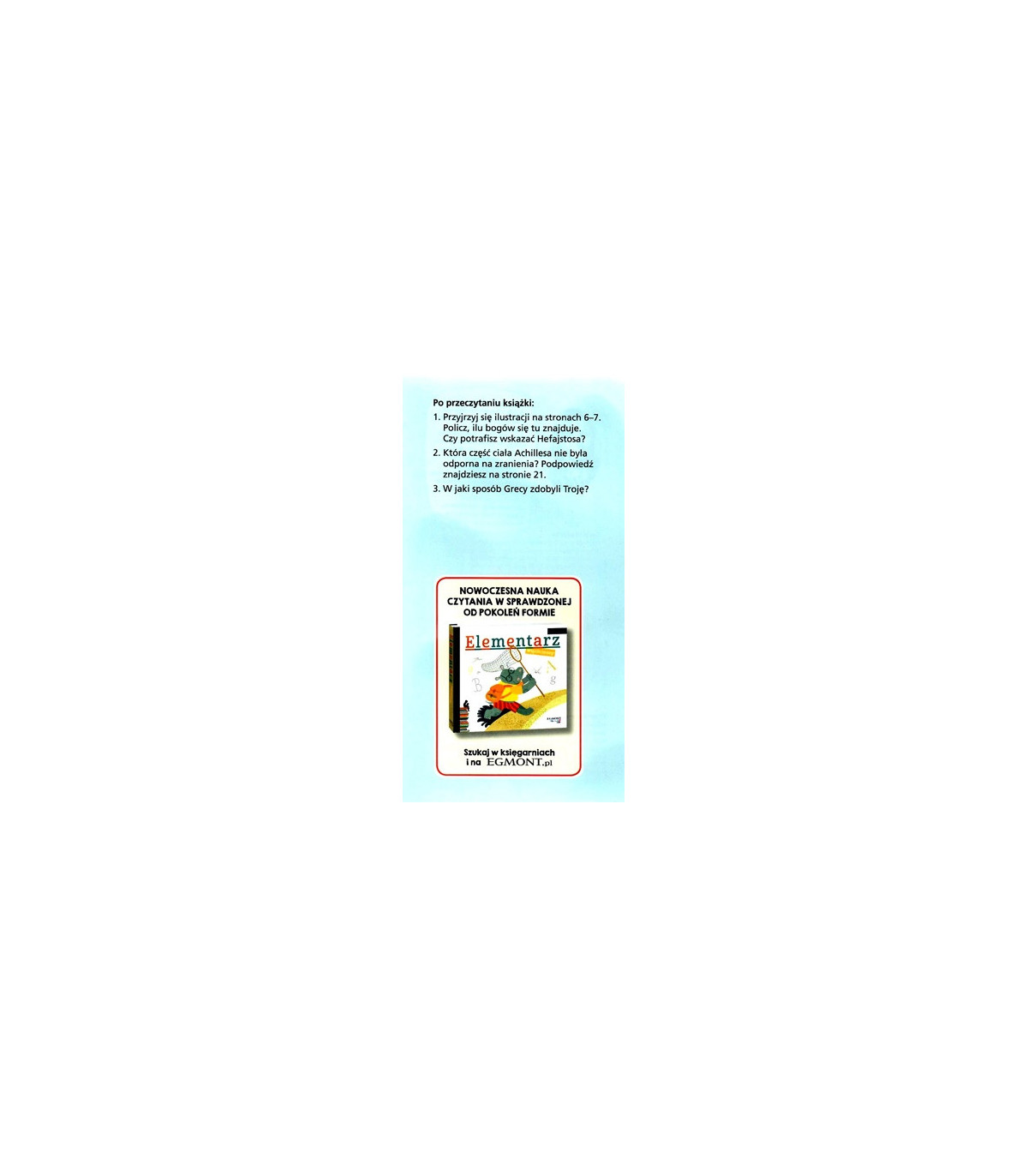 Dzięki tej książce możesz przenieść się do starożytnej Troi i poznać historię jej mieszkańców. Daj się wciągnąć w wir opowieści i przekonaj się, jaki wpływ na wydarzenia na ziemi mieli greccy bogowie z Olimpu. Poznaj bohaterów, zwycięzców i przegranych.z bohaterami. A sukces młodego czytelnika jest nie do przecenienia.