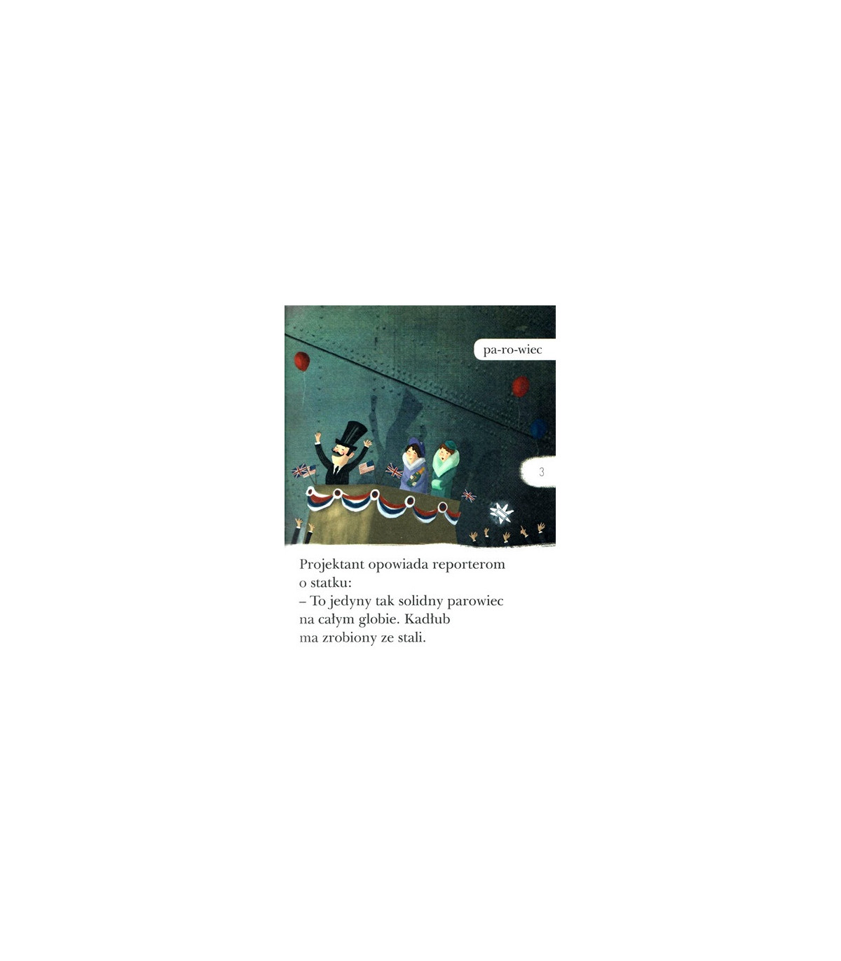 Historia pewnego statku. O rejsie "Titanica" to książka z drugiego poziomu bestsellerowej serii Czytam sobie - Składam zdania. Należy ona również do podserii Fakty. Poczytaj sobie historie prawdziwe! Wybitna polska autorka książek dziecięcych, Zosia Stanecka, opowiada historię z perspektywy małej dziewczynki, Ewy, postaci autentycznej, która w roku 1912 podróżowała z rodzicami na pokładzie "Titanica" i przeżyła jego katastrofę. Tę wzruszającą i trzymającą w napięciu historię uzupełniają przepiękne kolorowe ilustracje Joanny Rusinek.