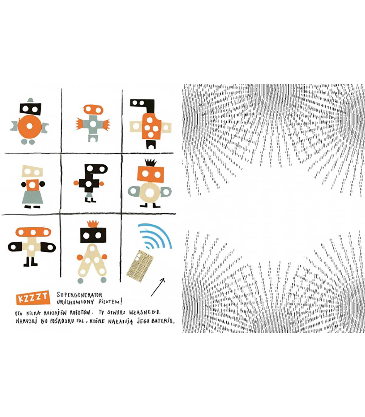 Ilustracje w tej niezwykłej książce zostały stworzone przy pomocy techniki animacyjnej ombro cinema. Wystarczy przyłożyć specjalną, paskowaną folię, która przeciągnięta przez obrazek, wprawia jego elementy w ruch. Autorami książki są graficy Frederique Bertrand i Michael Leblond. Seria "Piżamorama" opowiada o przygodach chłopca w piżamie w paski, który pokazuje małym czytelnikom różne ciekawe miejsca i przedmioty, na przykład Nowy Jork, Paryż czy muzeum sztuki. Do wszystkich książek dołączona jest specjalna folia, która tworzy iluzję optyczną.