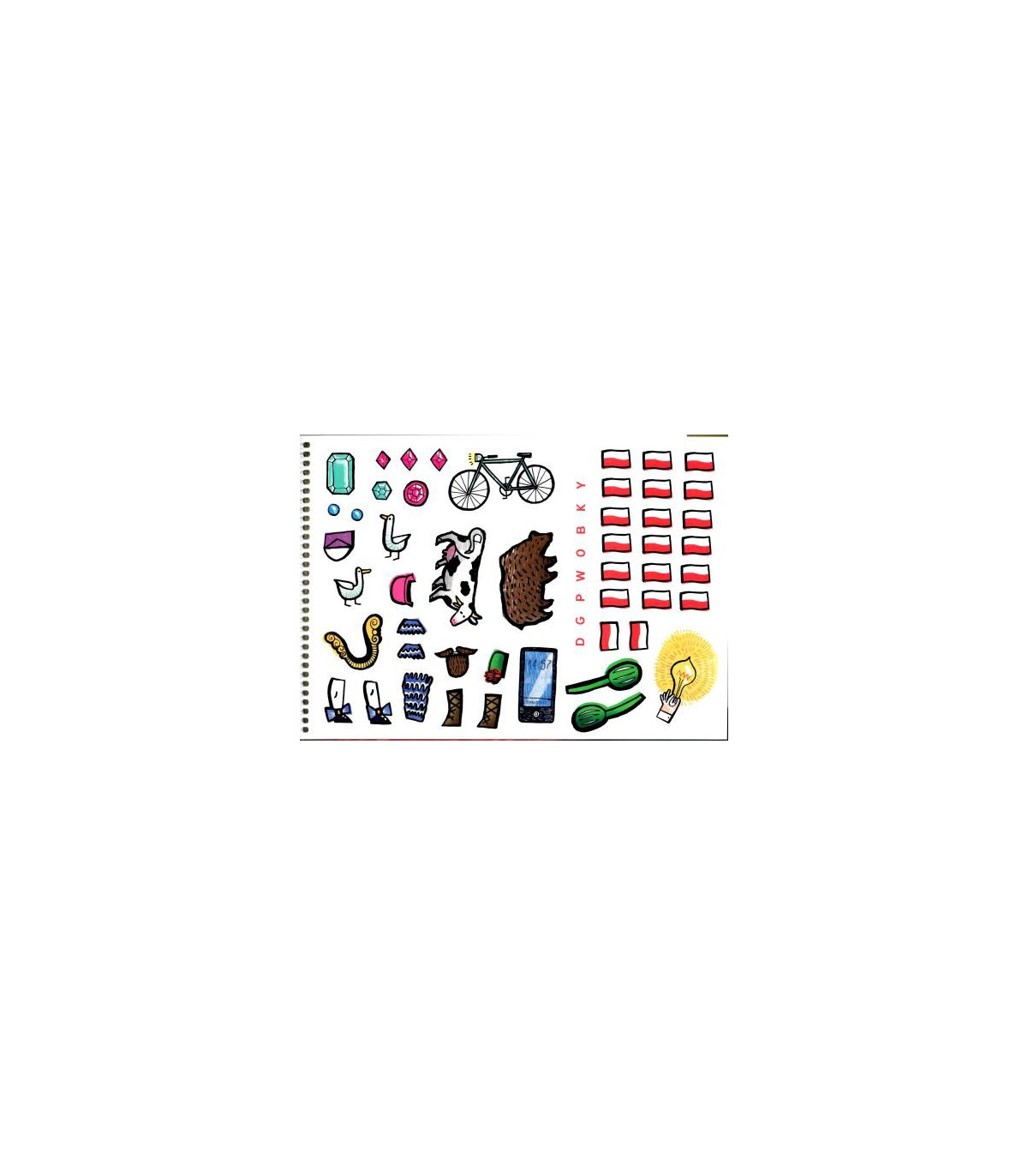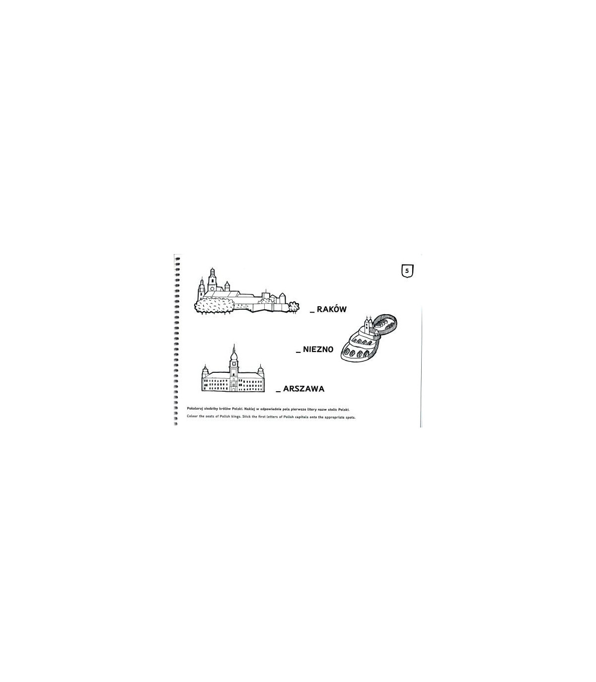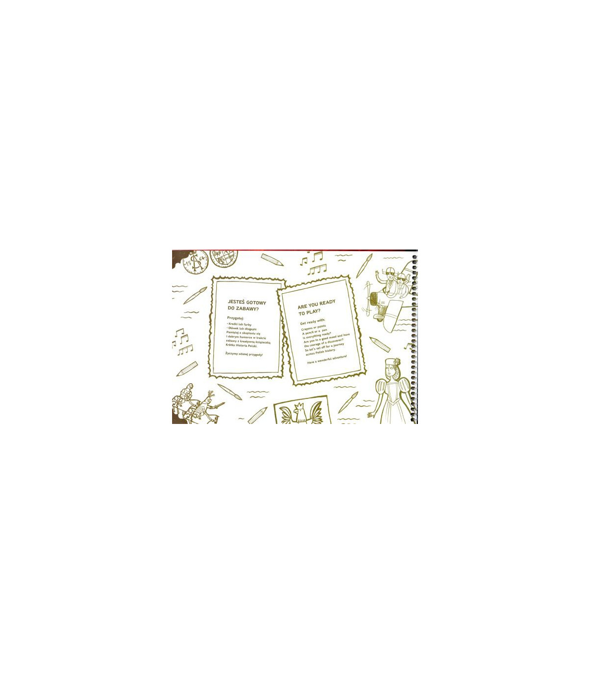 W środku książeczki dzieci znajdą: 77 naklejek, 4 plakaty w formacie A3 z historycznymi mapami Polski do pokolorowania i uzupełnienia naklejkami, różnorodne polecenia i wiele ciekawostek historycznych.
