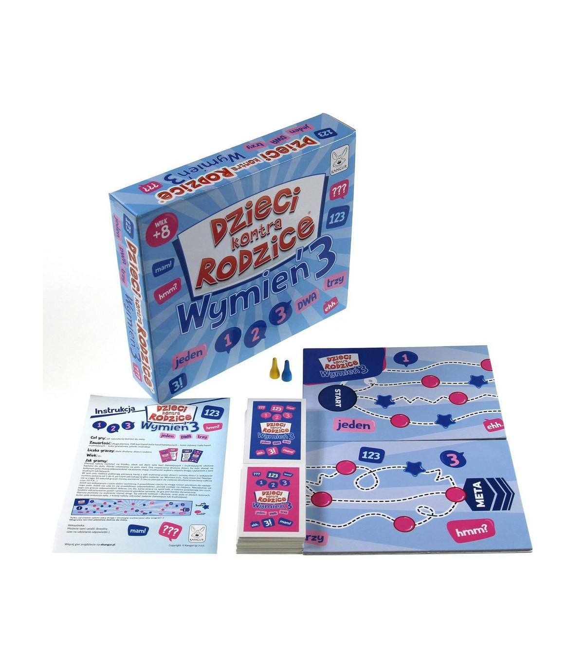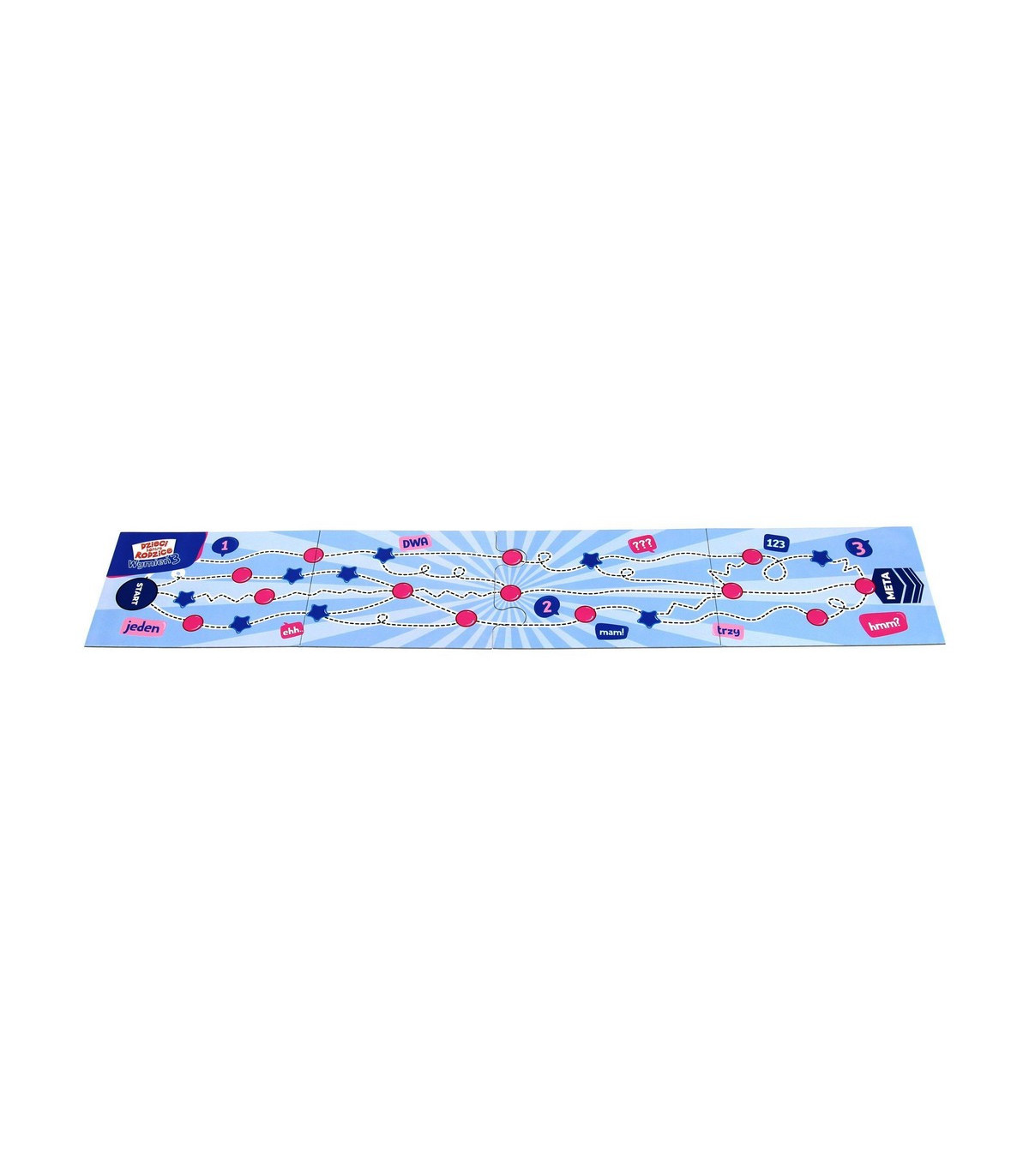 Masz tylko dziesięć sekund, aby odpowiedzieć na pytanie! Wymień trzy znaki drogowe, wymień trzy rzeczy, które kładziesz na kanapkę, wymień trzy rasy psów, wymień trzy rzeczy, które można znaleźć w kuchni! Ależ emocje! W grze znajdziecie długą planszę, która pozwala na wybranie różnej drogi. Sami wybierzcie strategię, aby dojść do mety jak najszybciej.