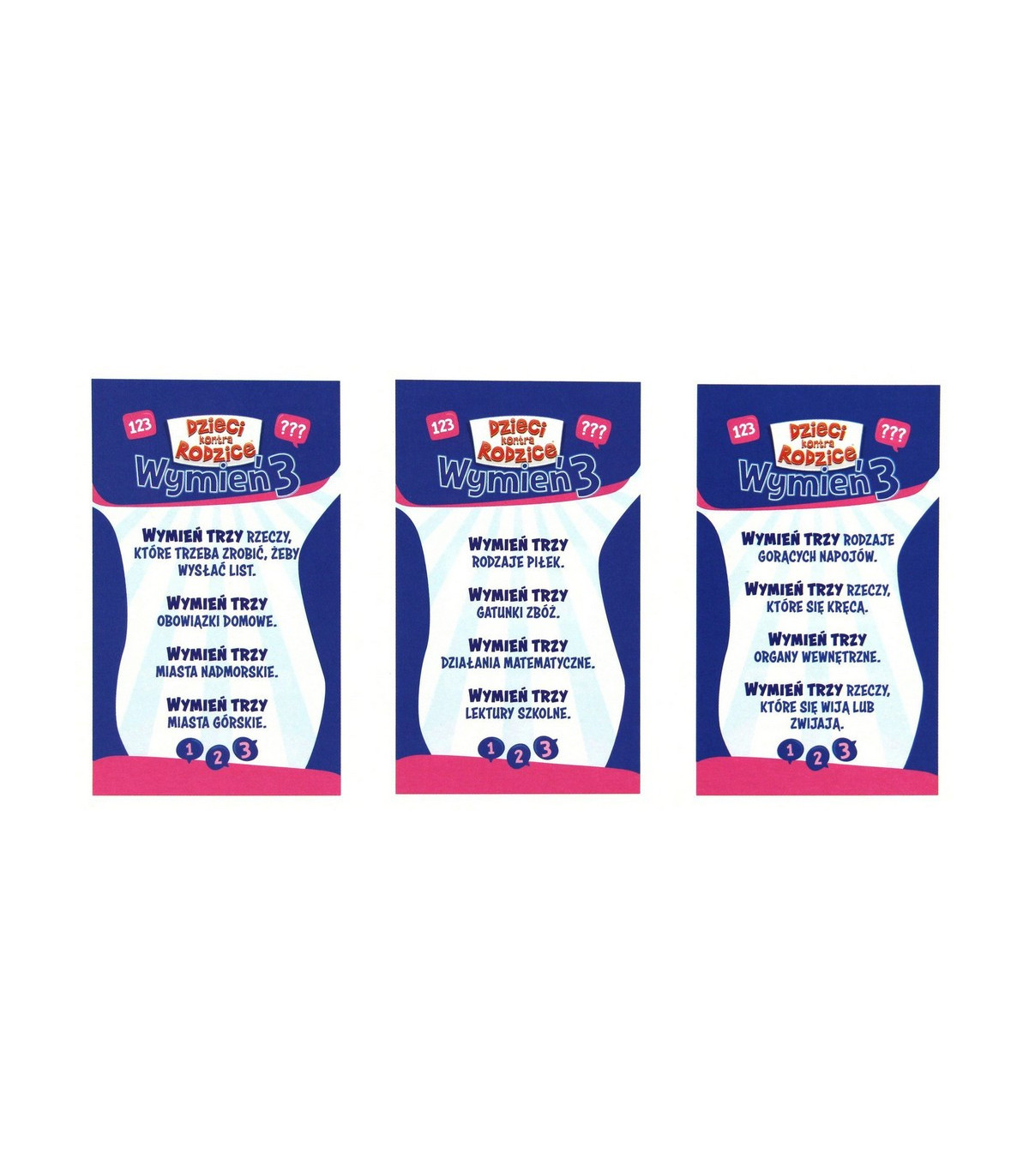 Proste reguły, drużynowa rywalizacja (dzieci kontra rodzice) i pytania o różnym stopniu trudności. Czytasz jedno z nich, odpowiadasz i przesuwasz się na planszy. Pod presją czasu, nawet najprostsze pytania mogą okazać się bardzo trudne. Im ciekawsze odpowiedzi tym weselsza gra!